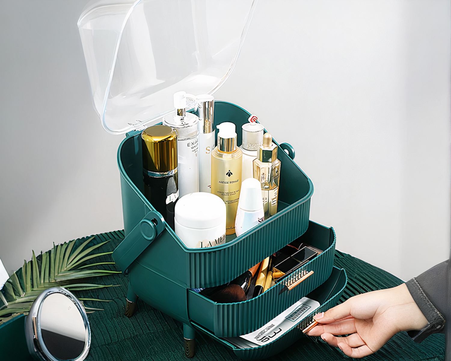 Ne laissez plus le désordre gâcher votre espace de beauté. Ajoutez une touche de sophistication et d’ordre à votre routine quotidienne avec notre boîte de maquillage de rangement cosmétique élégant. Choisissez votre couleur préférée entre le vert foncé ou le blanc épuré et transformez dès aujourd'hui votre espace beauté en un sanctuaire de style et de praticité.