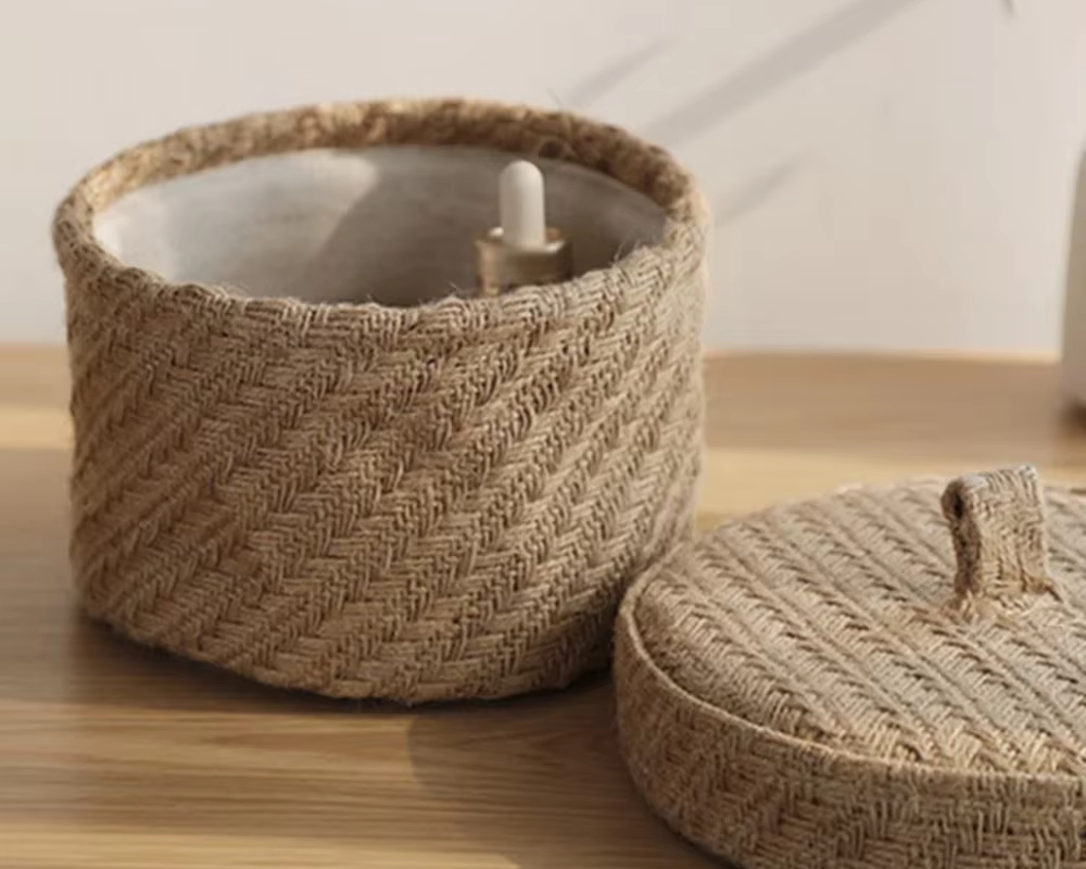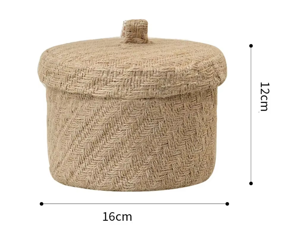 Dotée d'un couvercle amovible, cette boîte de rangement en jute permet de garder vos affaires en sécurité tout en les protégeant de la poussière et de la saleté. Sa texture robuste et résistante en fait un choix idéal pour ranger une variété d'objets, des accessoires de maquillage aux coton-tiges en passant par les bijoux.