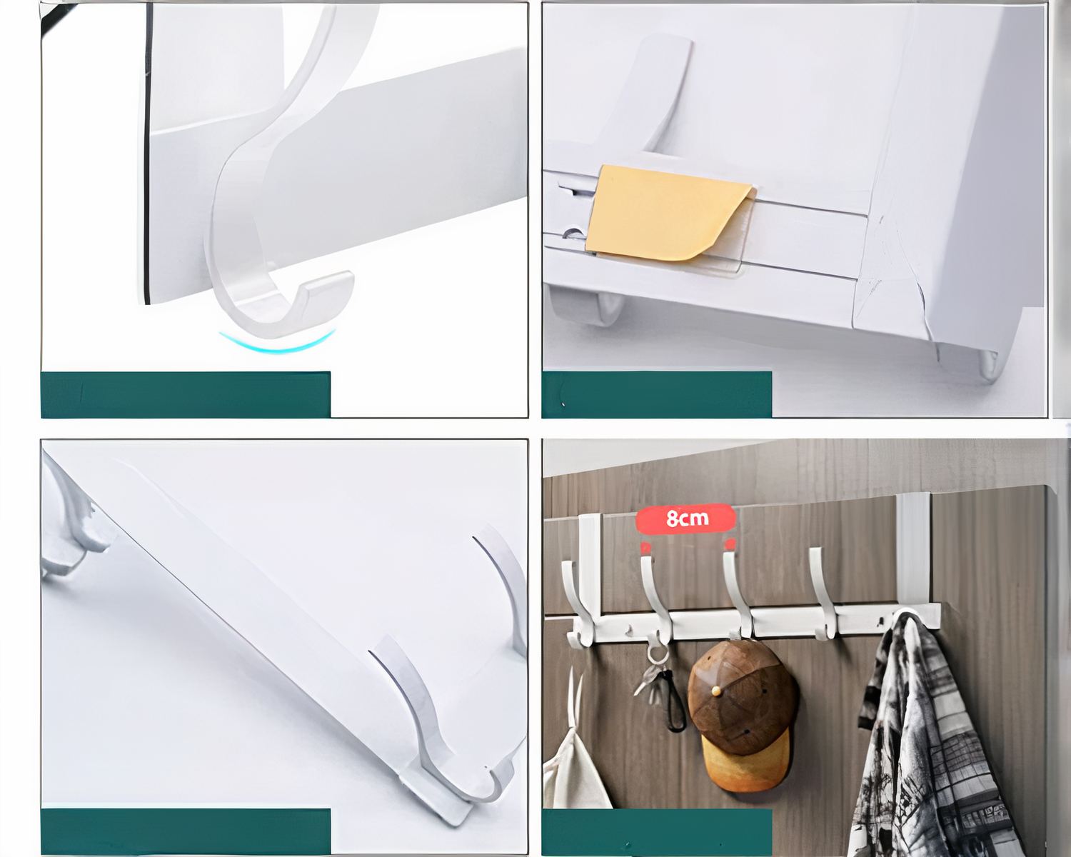 Ce crochet de porte est muni de 5 accroches en aluminium et chaque crochet peut supporter jusqu'à 10kg. Les crochets de porte sont spécialement traités et peints, la surface est lisse et impeccable, pas besoin de vous soucier de rayer vos vêtements. Silencieux, il y a un tampon en éponge à l'arrière du crochet de porte pour protéger la porte et rendre l'installation plus sûre. Il n'y aura pas de son lors de la pendaison ou du déshabillage.