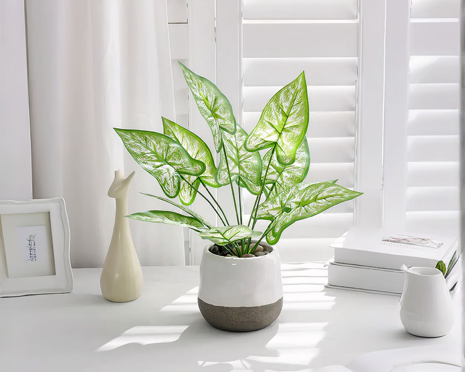 Cette plante artificielle à 12 feuilles s'intègre facilement dans tous les styles de décoration, que ce soit dans un salon, une chambre, un bureau ou une salle de bain. Grâce à sa taille compacte et à son design polyvalent, elle peut être placée sur une étagère, une table basse, un rebord de fenêtre ou même à côté de votre baignoire pour créer une ambiance végétale apaisante et relaxante.
