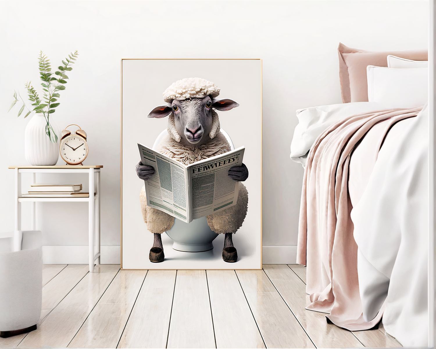 Découvrez notre superbe tableau d'un mouton lisant le journal. Il est disponible en plusieurs dimensions afin de vous laisser l'embarras du choix. Nous mettons à votre disposition un guide des tailles pour vous aider à faire votre choix. N'hésitez pas à le consulter pour profiter d'un tableau dont la taille est adaptée à votre salle de bain.