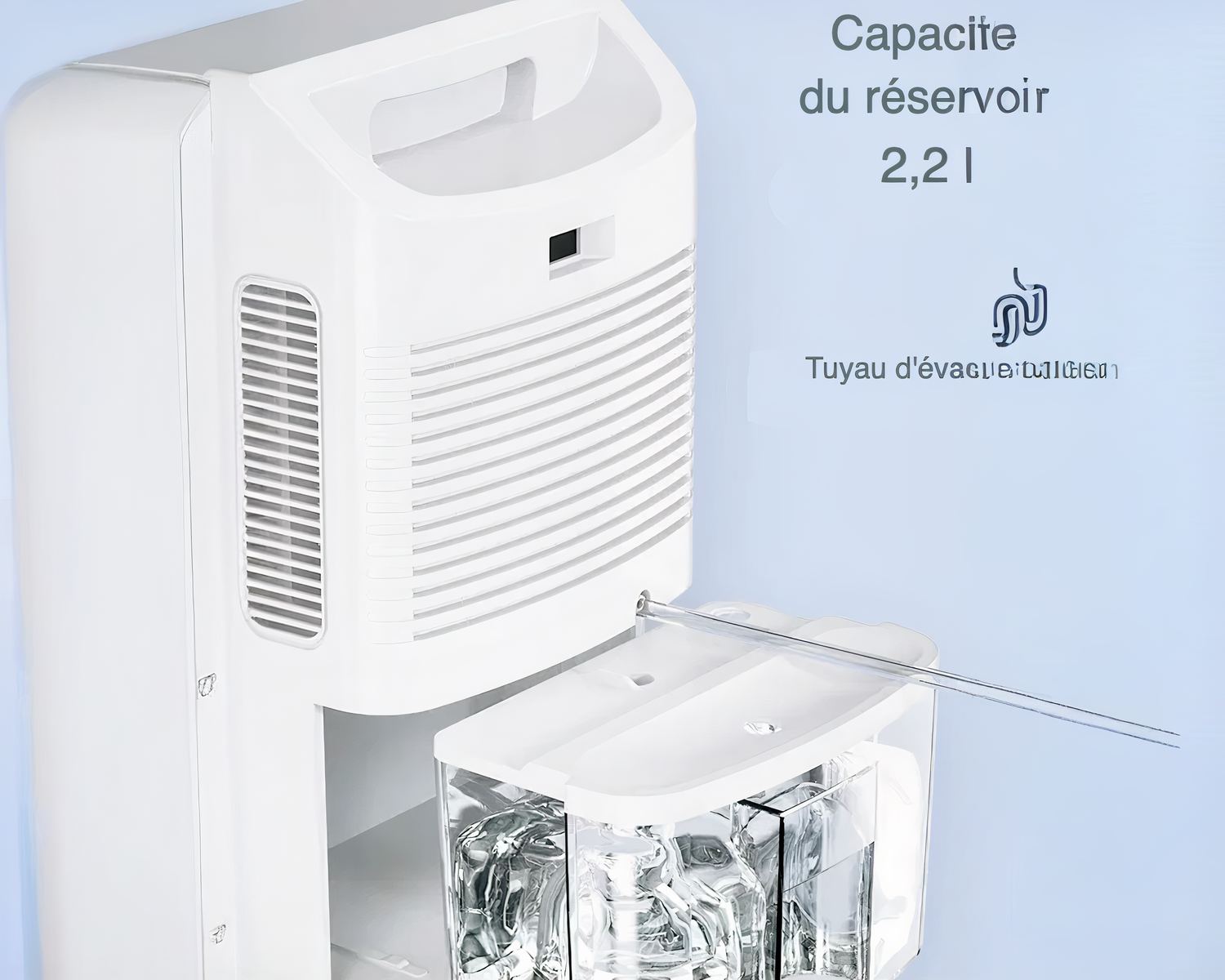 Notre déshumidificateur salle de bain dernière génération possède un écran tactile LED à cristaux liquides et une télécommande pour la programmation et le réglage. Il est rapide et efficace avec ses trois modes d'utilisation adaptables et la régulation de la vitesse de l'air. Son bac de récupération amovible contient jusqu'à 2,22 litres suppléé par un tuyau d'évacuation.