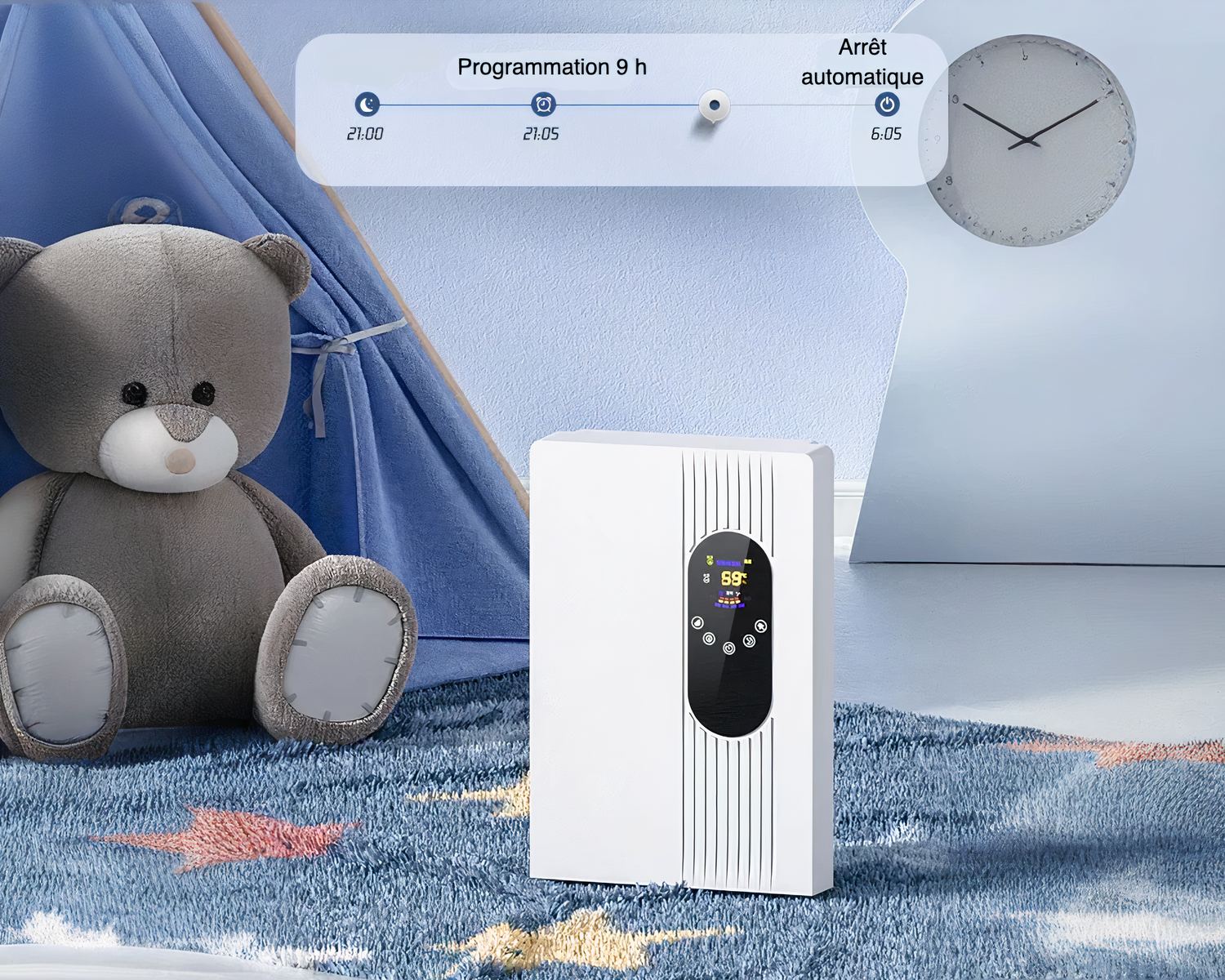 L'écran LED à cristaux liquides au toucher sensible apporte une vision claire des indicateurs et une facilité d'utilisation pour tous. Sa technologie nouvelle de purification par photo-catalyseur assainit l'air rapidement et prévient la prolifération des bactéries. Que vous en ayez besoin dans la chambre, le salon ou la salle de bain, vous bénéficierez d'un air sain. Sans oublier que ce déshumidificateur travaille en silence.