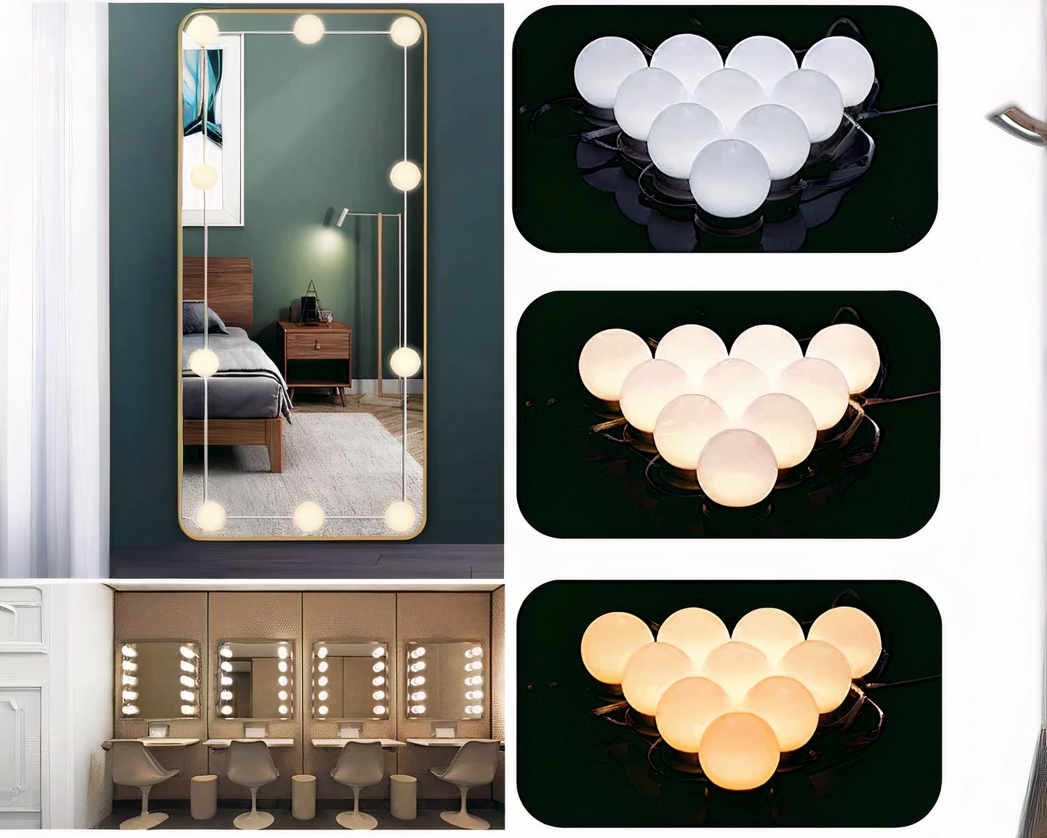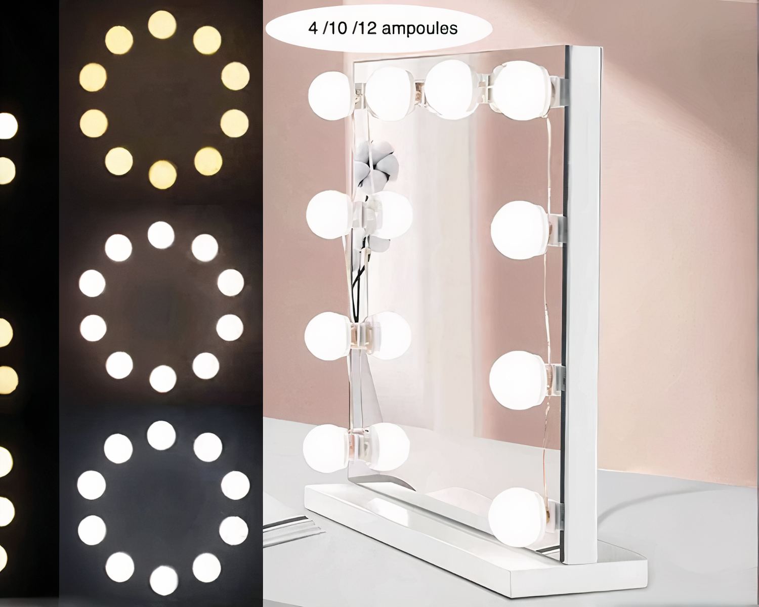 Avec ces ampoules, vous règlerez la luminosité, et ce réglage peut rester en mémoire si vous voulez le conserver. Les trois couleurs sont également réglables pour une ambiance aussi personnalisée que possible et selon vos besoins. Une télécommande prévue à cet effet permet de nombreuses combinaisons. Les fils excédentaires peuvent se cacher dans les ampoules et ainsi garder un support, miroir ou autre, propre et glamour.