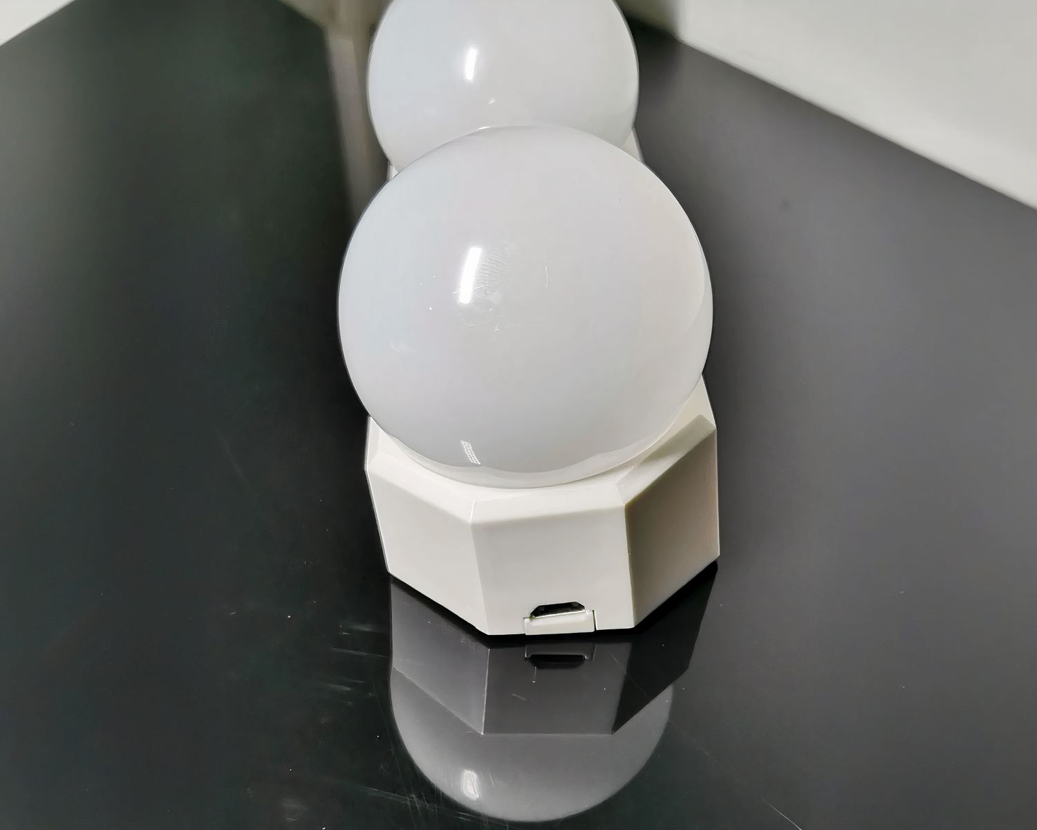 Ces ampoules rondes sur leur support blanc apporteront une ambiance spéciale dans votre salle d'eau, tour à tour cocooning ou plus vive pour mieux apprécier les contours de votre visage : prévues à cet effet, elles trouveront facilement d'autres applications. Faciles à installer, à déplacer et à charger, elles vous donneront entière satisfaction.