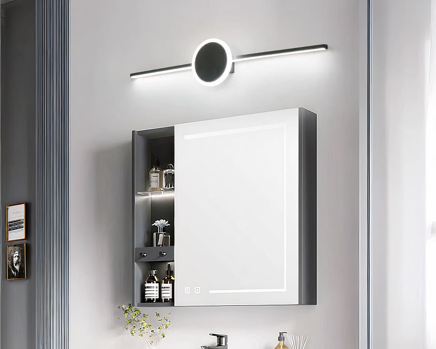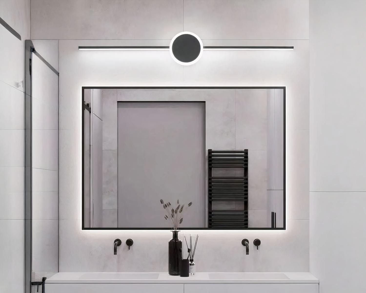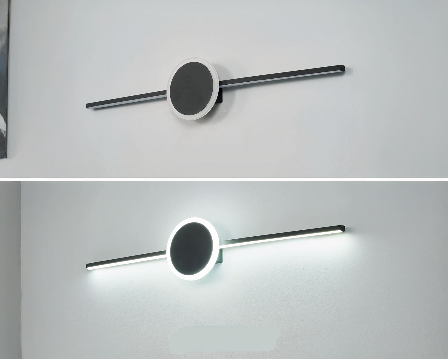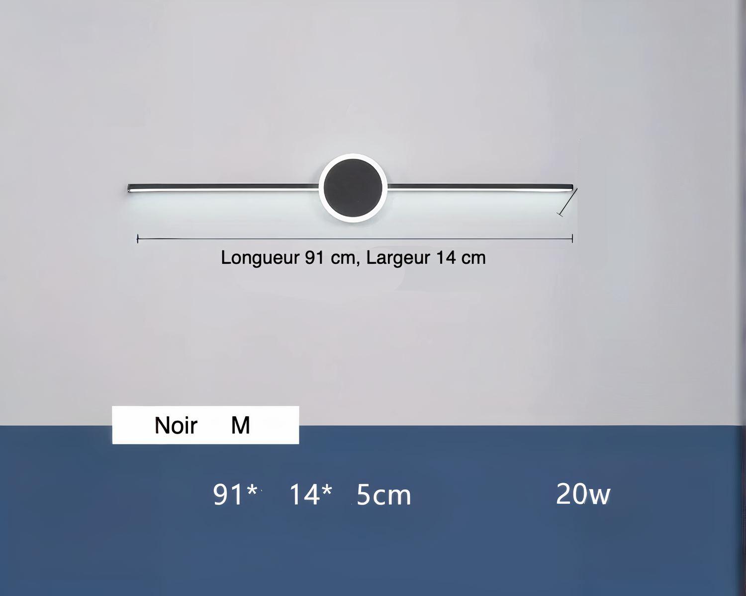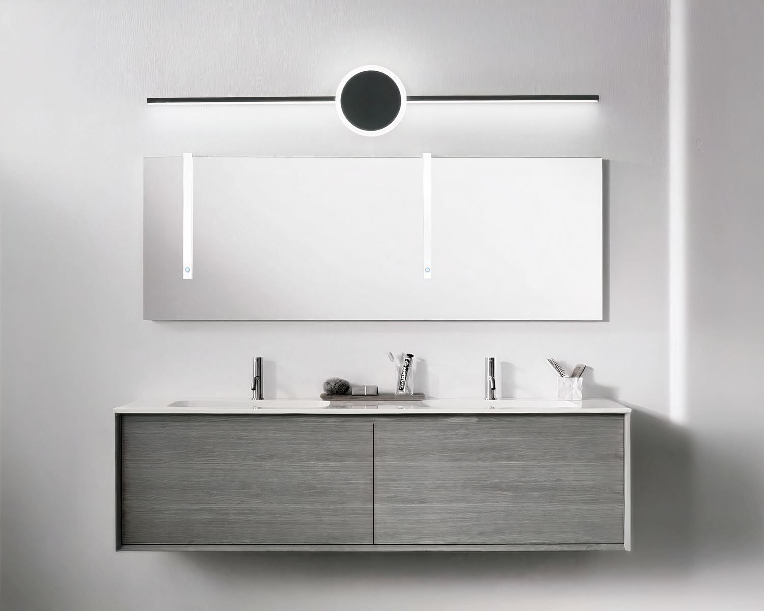 Ce néon de salle de bain possède un design moderne épuré avec un néon en forme de cercle au centre d'une barre rectiligne. Les matériaux utilisés sont de qualité et faits pour durer. Ce néon de style applique murale permet un éclairage efficace de votre salle de bains, placé au dessus du lavabo avec miroir, étagère ou petit meuble, comme vous aimez.