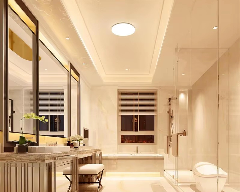 Conçu pour résister à l’humidité, ce plafonnier est certifié IP54, ce qui le rend idéal pour une installation dans les zones exposées aux éclaboussures. Sa structure robuste protège les composants électriques de la condensation et des projections d’eau, assurant une utilisation longue durée en toute sécurité.