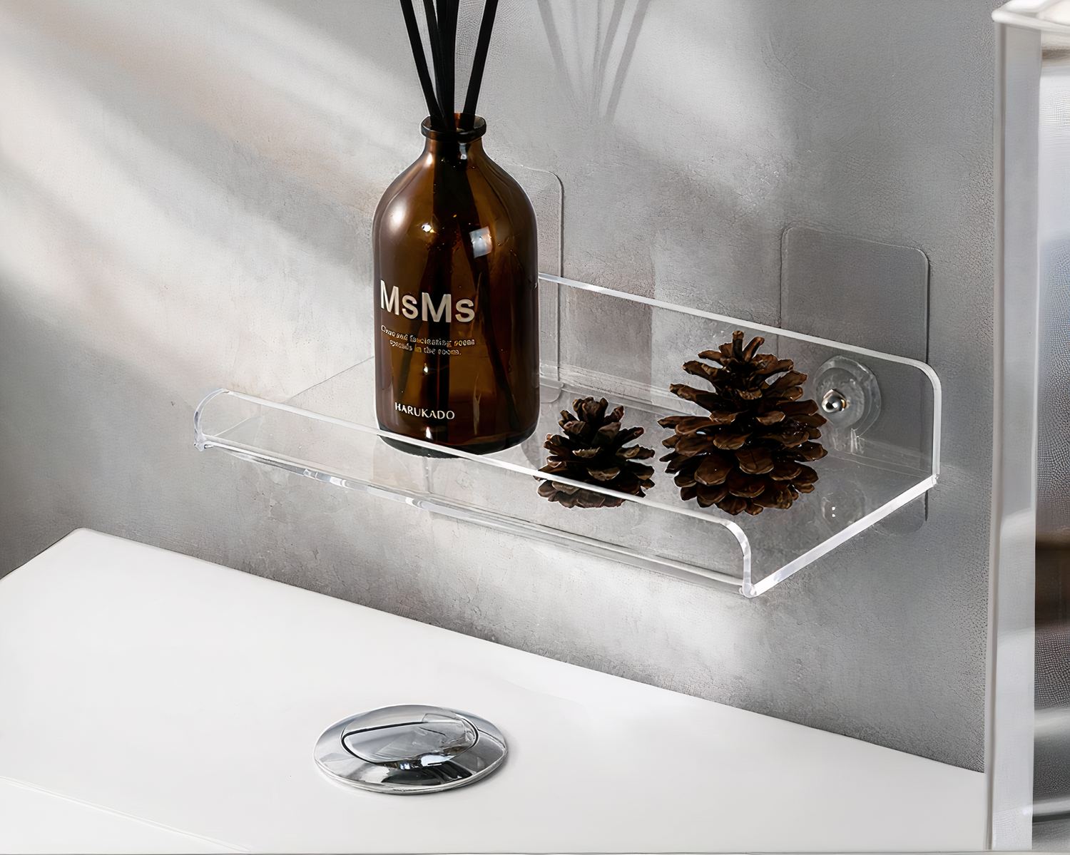 Étagère murale salle de bain en acrylique auto-adhésive