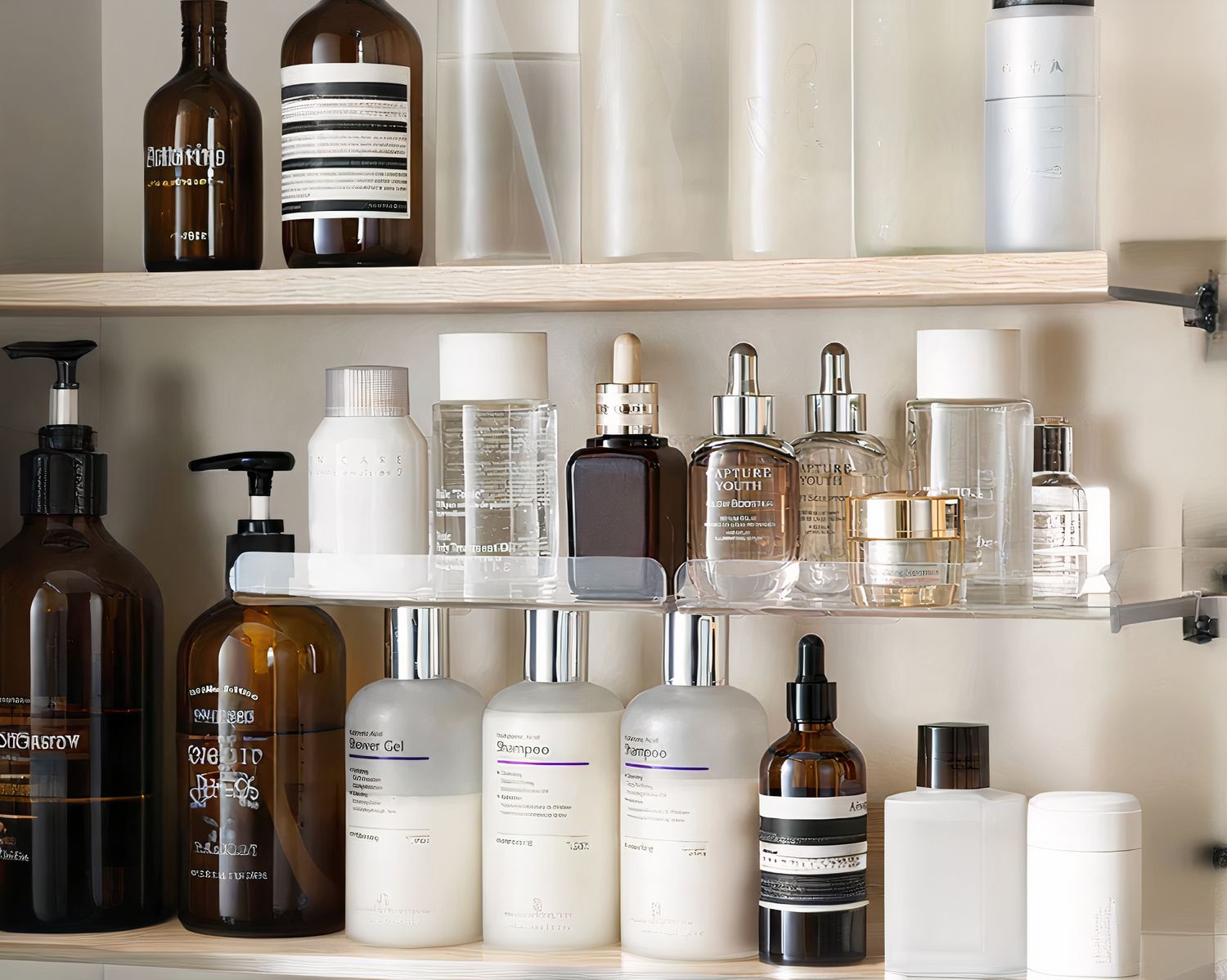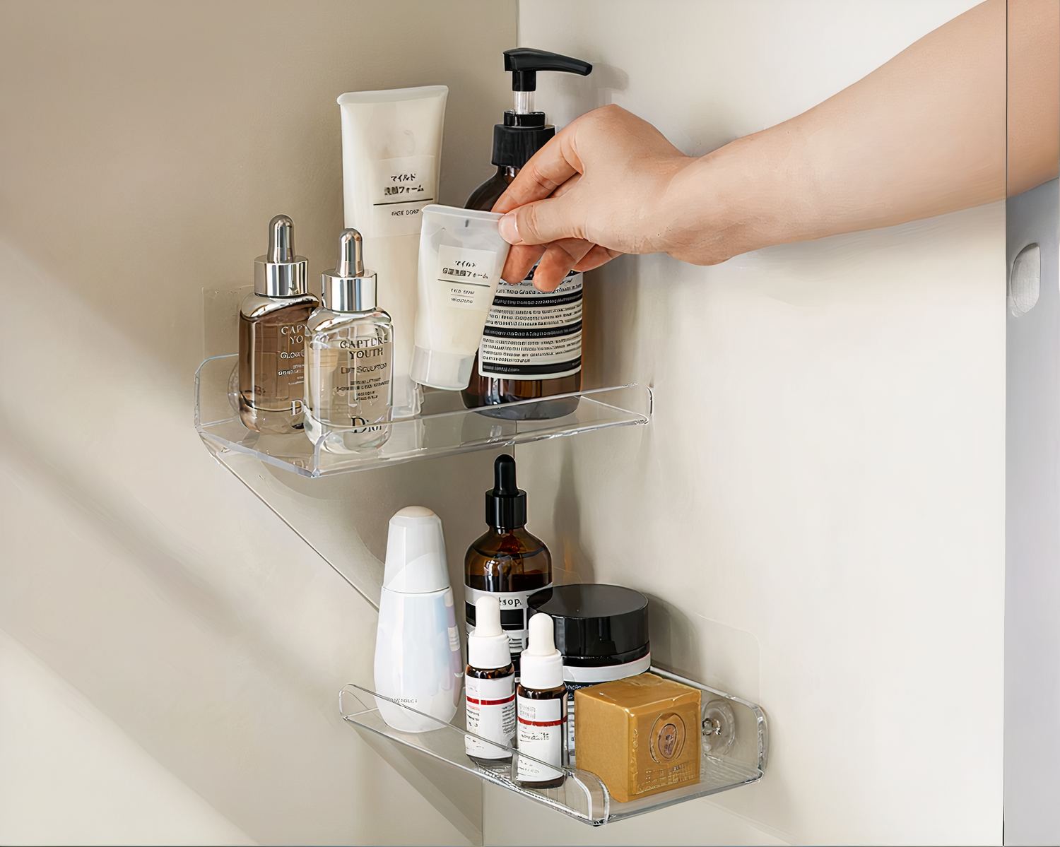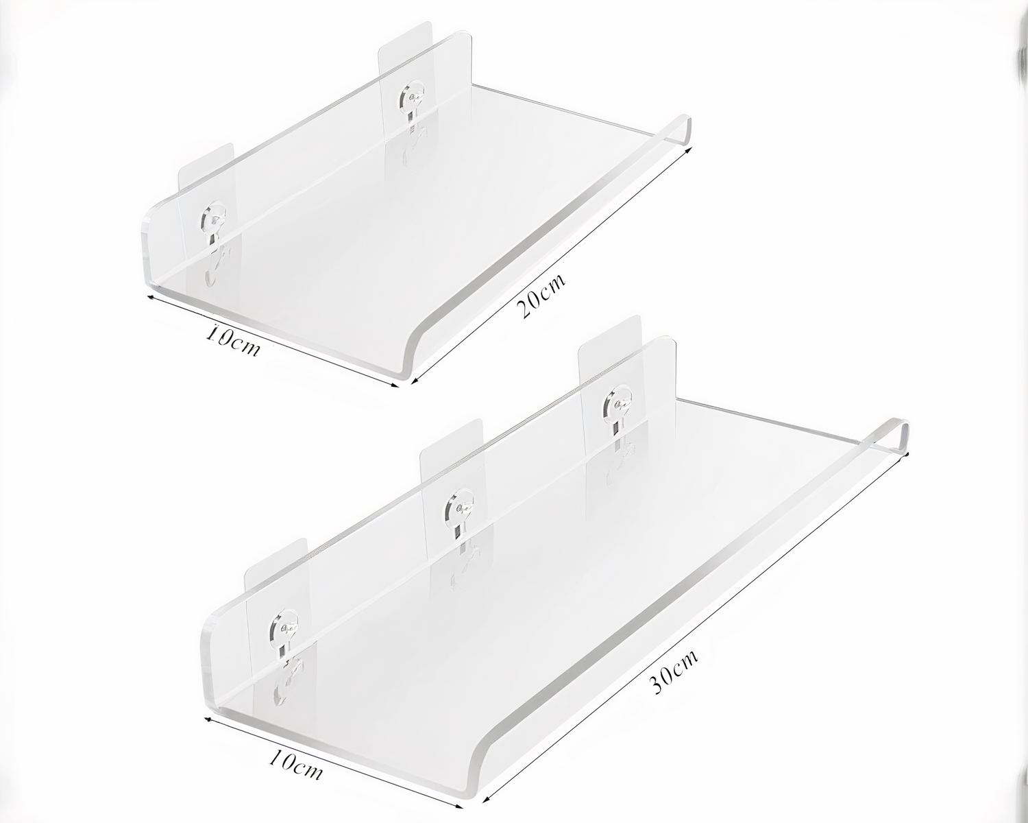 Notre étagère murale salle de bain en acrylique auto-adhésive est un accessoire pratique et élégant pour organiser et ranger vos produits de beauté et autres articles de toilette dans votre salle de bain. Sa transparence lui permet de se fondre discrètement dans le décor, tout en mettant en valeur vos produits.