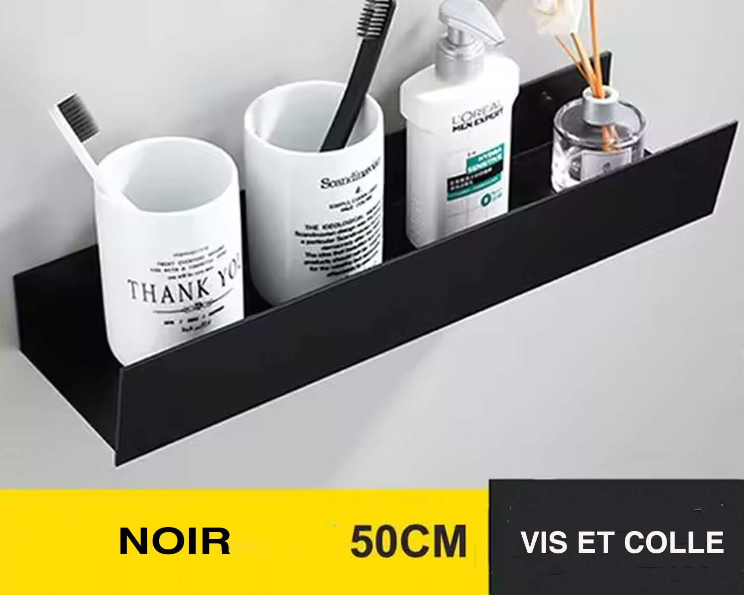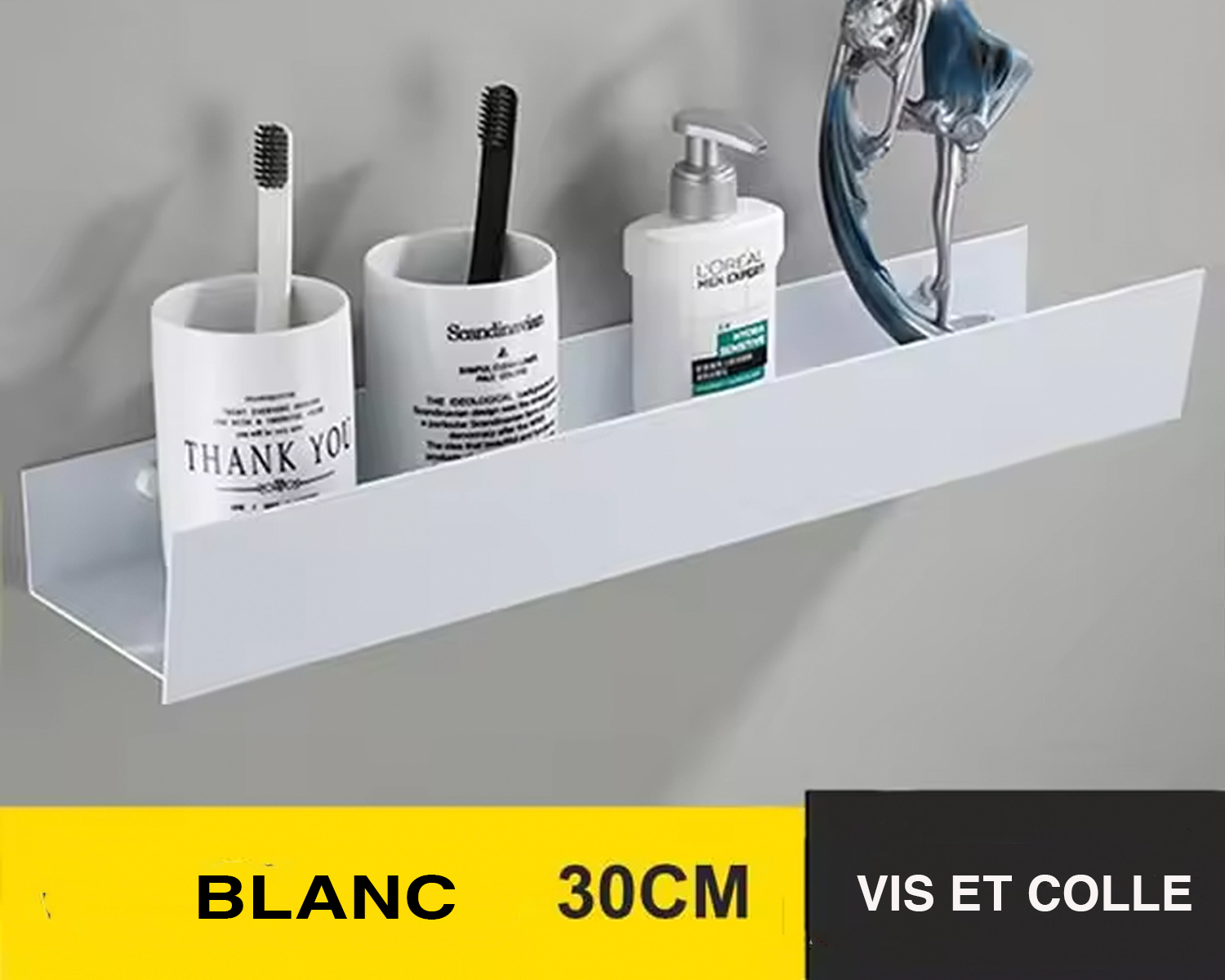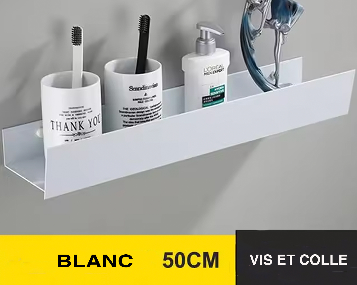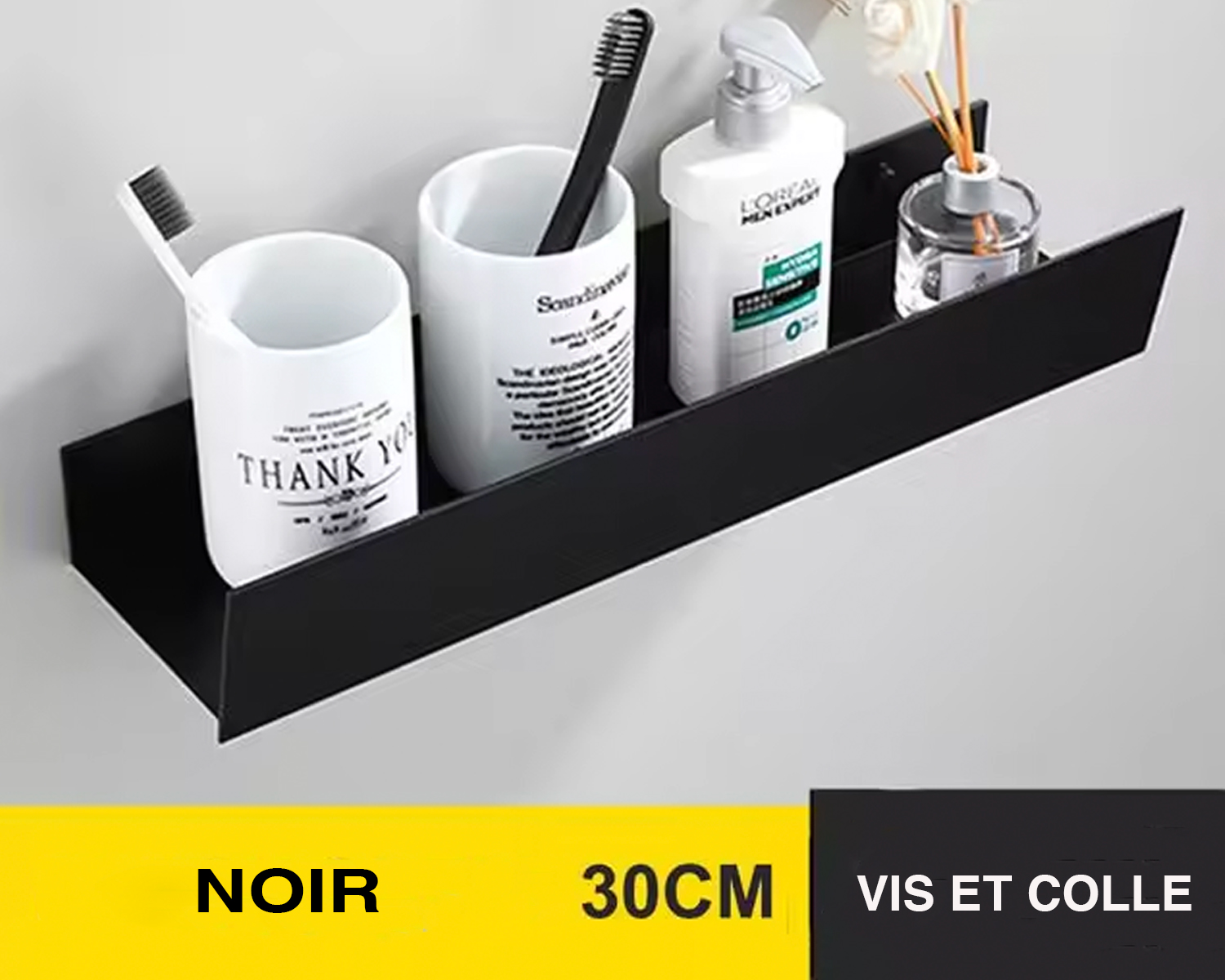 Fabriquée en aluminium de qualité, cette étagère murale de salle de bain est résistante à l'humidité et est facile à entretenir. Facile également à installer, elle est fournie avec des vis et de la colle pour que vous puissiez choisir la façon dont vous souhaitez la fixer au mur, toujours en étant solide.