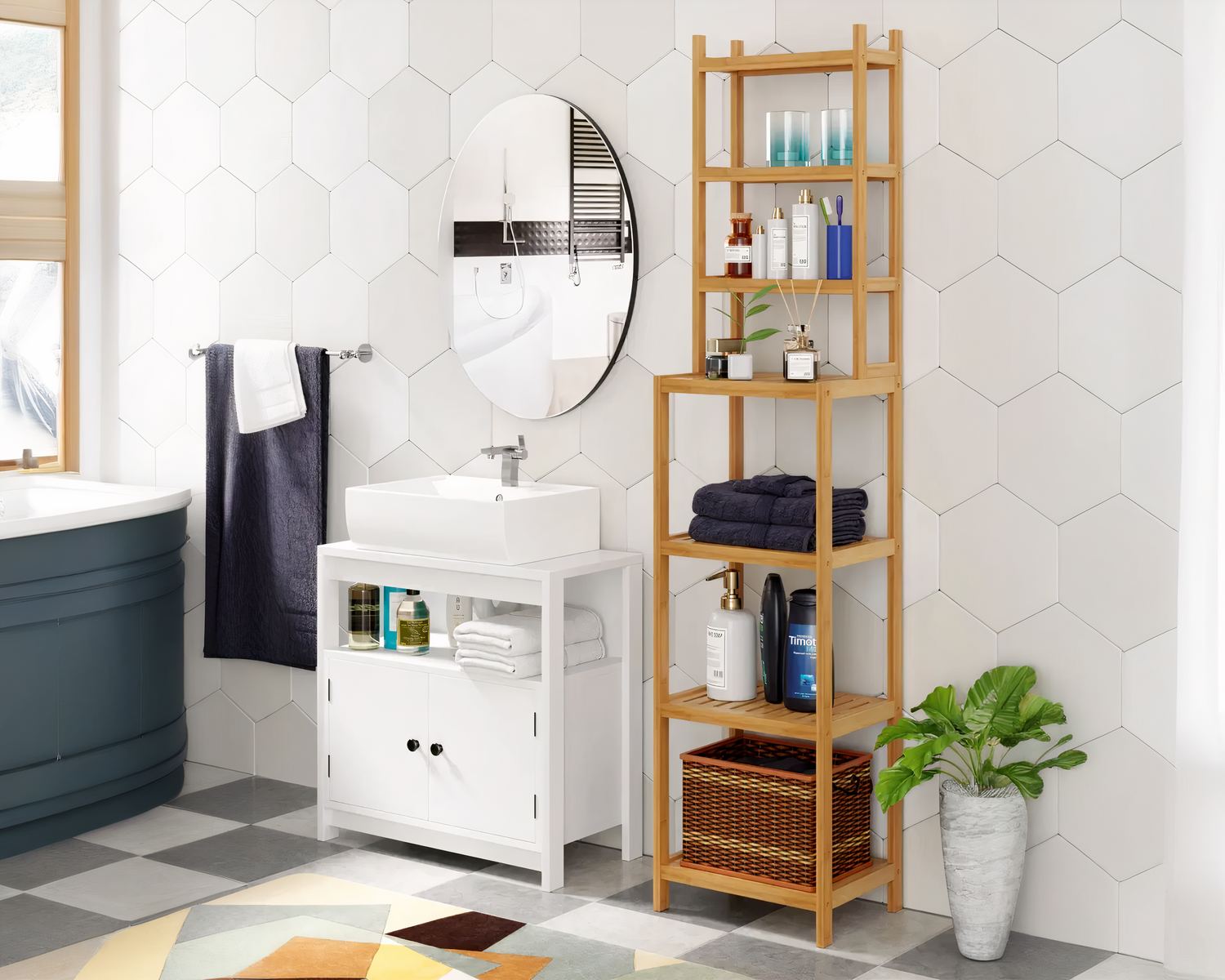 Modulable, cette étagère est composée de deux parties que vous pouvez superposer ou placer séparément. Les différentes étagères sont parfaites pour organiser vos affaires de manière ordonnée et accessible, vous permettant ainsi de garder votre salle de bain bien rangée et organisée. Facile à monter, cette étagère salle de bain en bambou à 7 niveaux est un meuble polyvalent et fonctionnel qui vous accompagnera pendant de nombreuses années.
