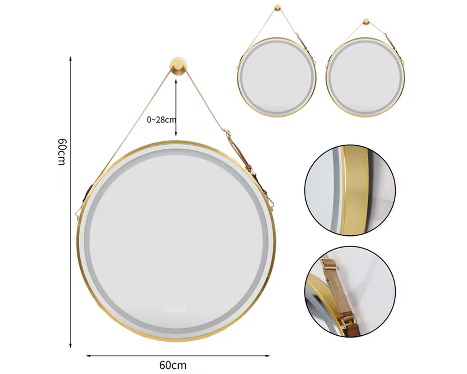 Fabriqué avec des matériaux de qualité, ce miroir LED suspendu est durable et résistant à l'humidité, ce qui en fait un choix idéal pour les salles de bains. Sa conception suspendue lui donne un aspect léger et aérien, parfait pour les espaces restreints ou les petites salles de bains. Choisissez votre déclinaison !