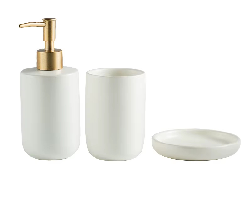 Chaque élément de cet ensemble a été conçu pour répondre à vos besoins avec praticité. Le distributeur de savon offre une utilisation fluide et hygiénique, tandis que le porte-savon permet de garder votre savon sec et propre, évitant ainsi les résidus inesthétiques. Le gobelet, idéal pour ranger vos brosses à dents ou d’autres petits accessoires, complète ce trio indispensable pour une salle de bain bien organisée.