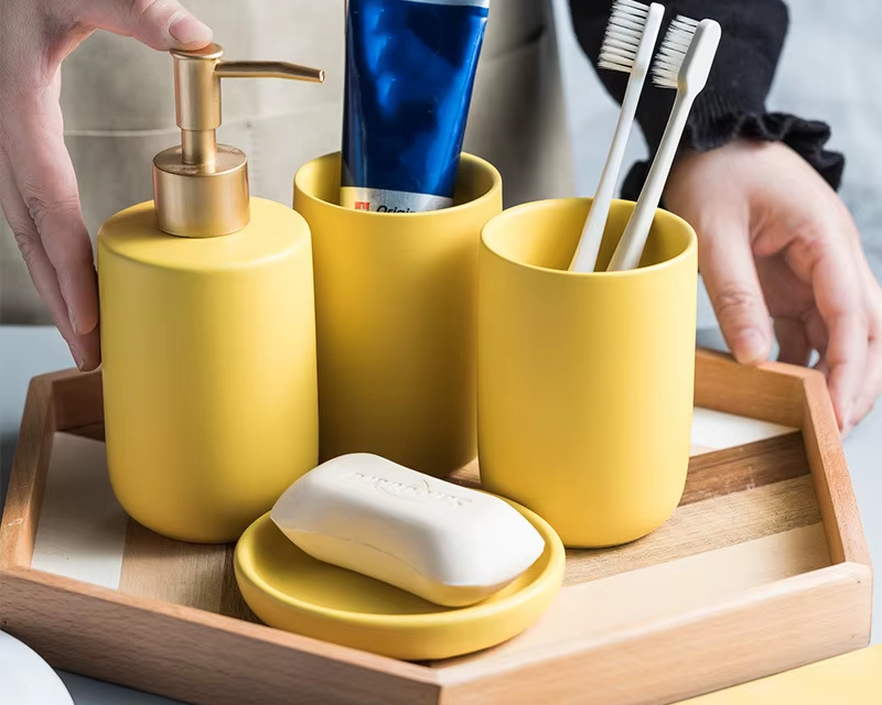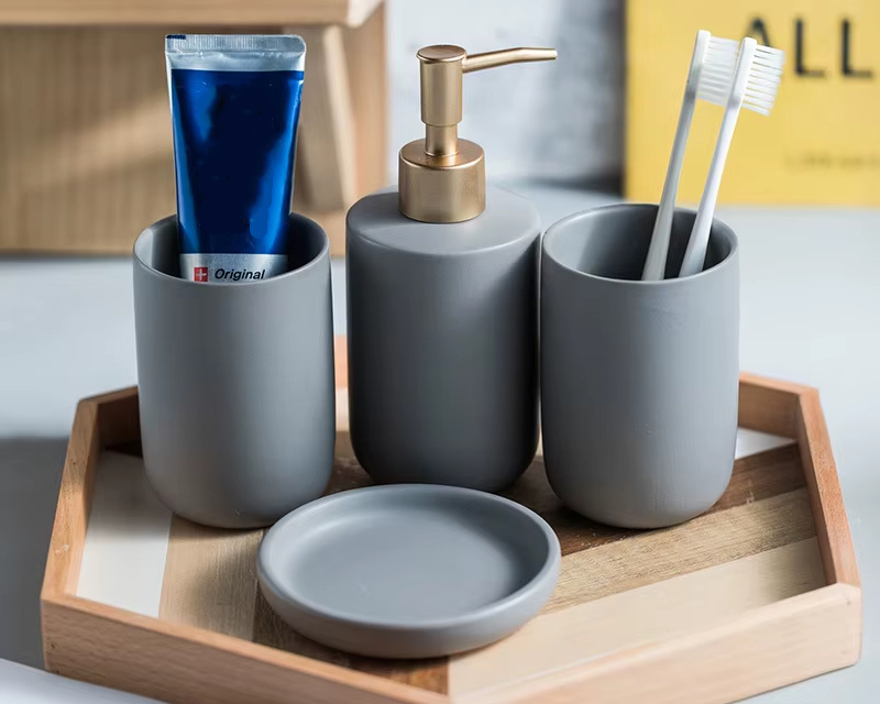 Ensemble d’accessoires de salle de bain porte savon, distributeur de savon et gobelet