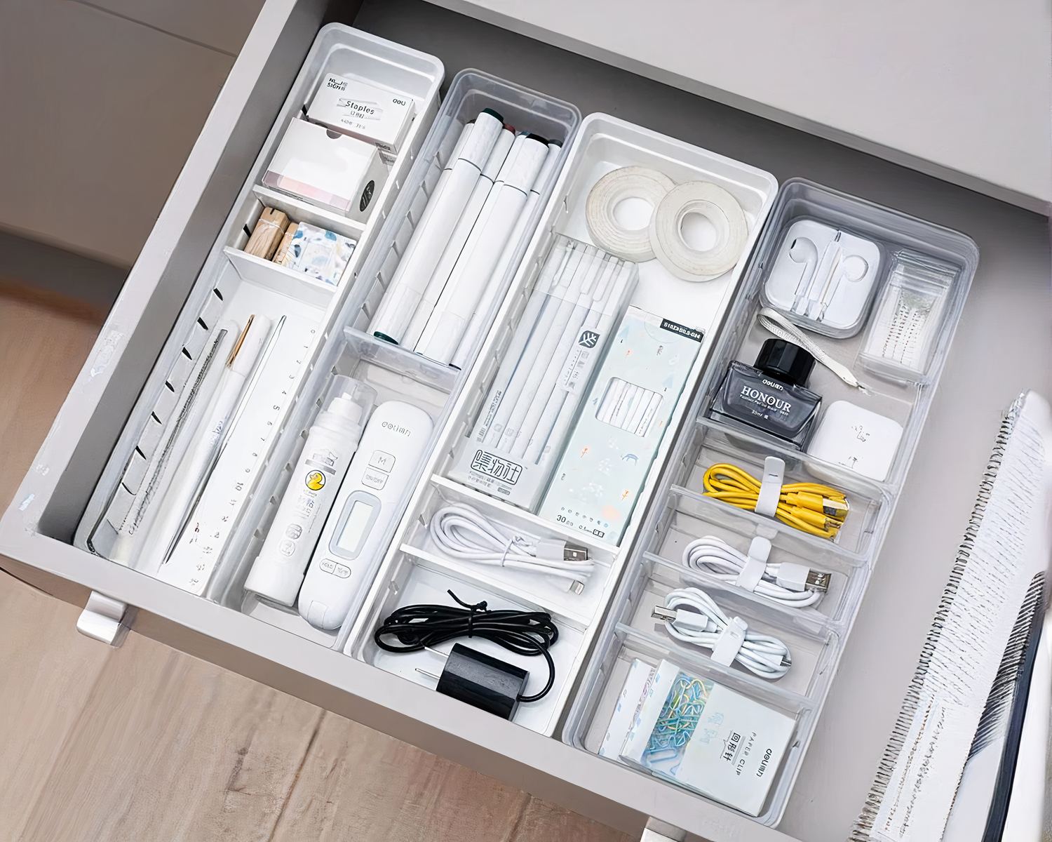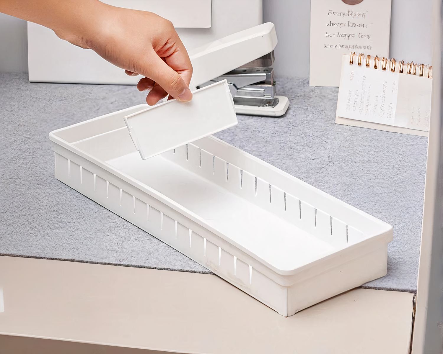 Parfait pour organiser divers articles comme les accessoires de bureau, les articles de maquillage, les ustensiles de cuisine ou les petits outils, cette boîte garde tout à portée de main et en ordre. Sa conception compacte permet de maximiser l'espace dans vos tiroirs, rendant votre espace plus propre et mieux organisé.