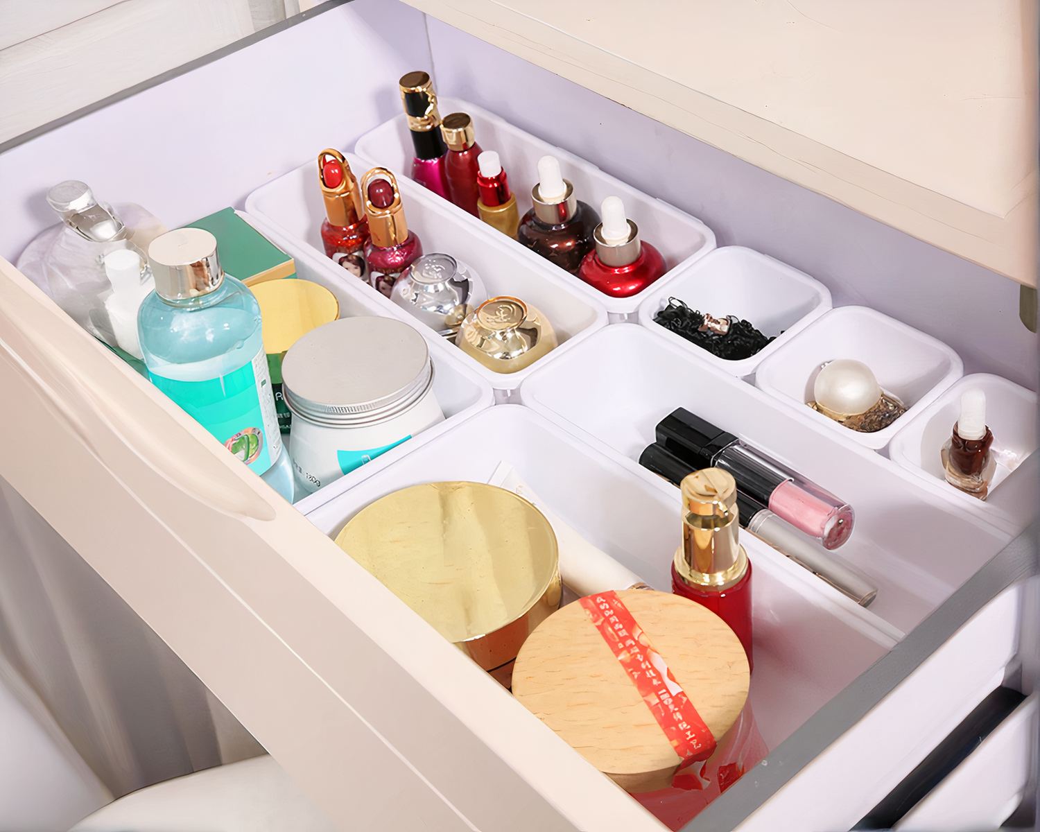 Grâce à leur design modulaire et polyvalent, ces organiseurs vous aident à maximiser l'espace disponible dans vos tiroirs tout en maintenant une esthétique soignée et organisée. Que vous soyez un perfectionniste du rangement ou simplement en quête de fonctionnalité, notre pack de huit pièces répondra à tous vos besoins en matière d'organisation domestique.