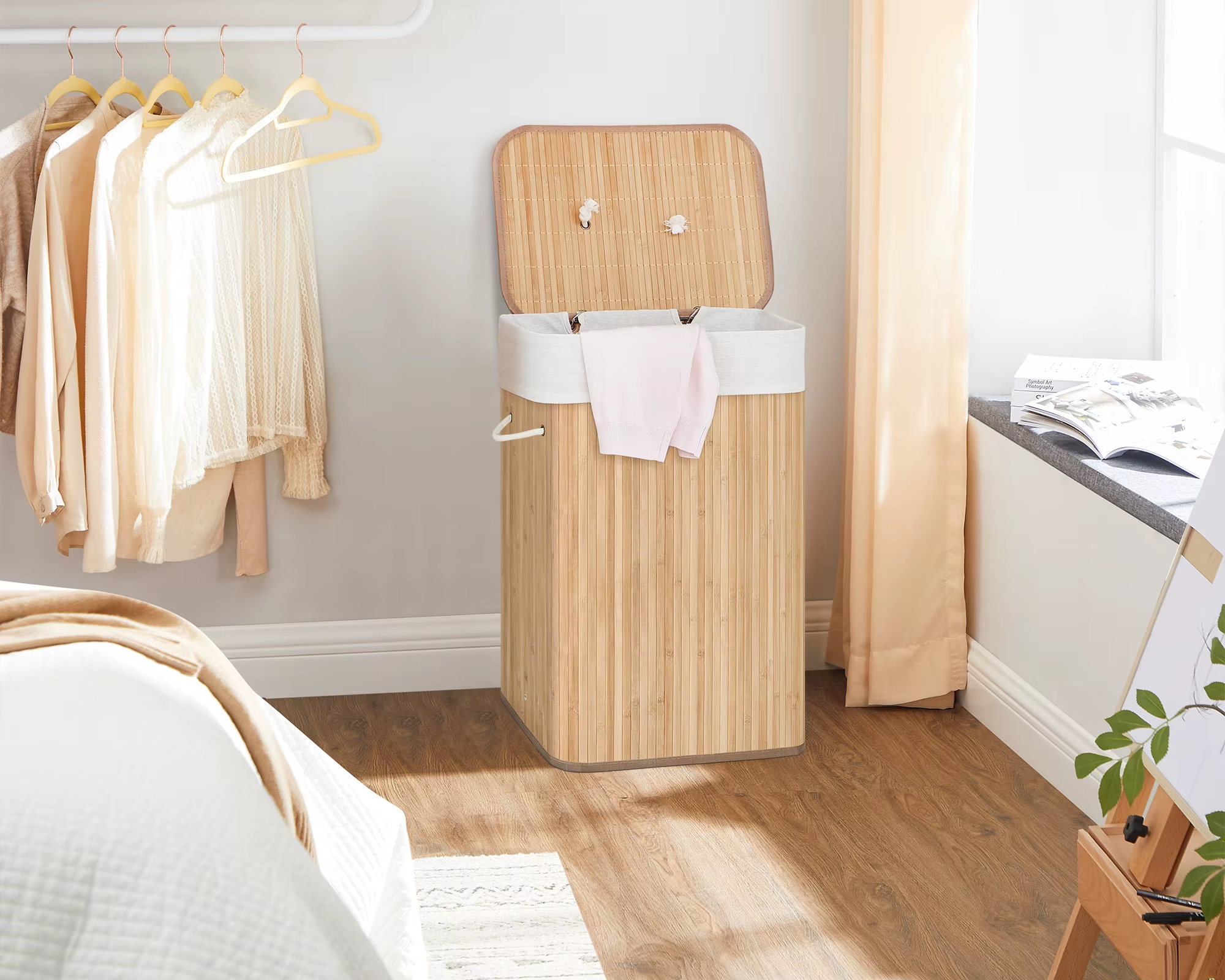 Fabriqué en bambou authentique, ce panier à linge séduit par son esthétique épurée et intemporelle. Son design naturel s’intègre harmonieusement à tous les styles de décorations, qu’ils soient bohèmes, modernes ou scandinaves. Plus qu’un simple rangement, il devient un véritable élément décoratif que vous pourrez afficher fièrement dans votre intérieur.
