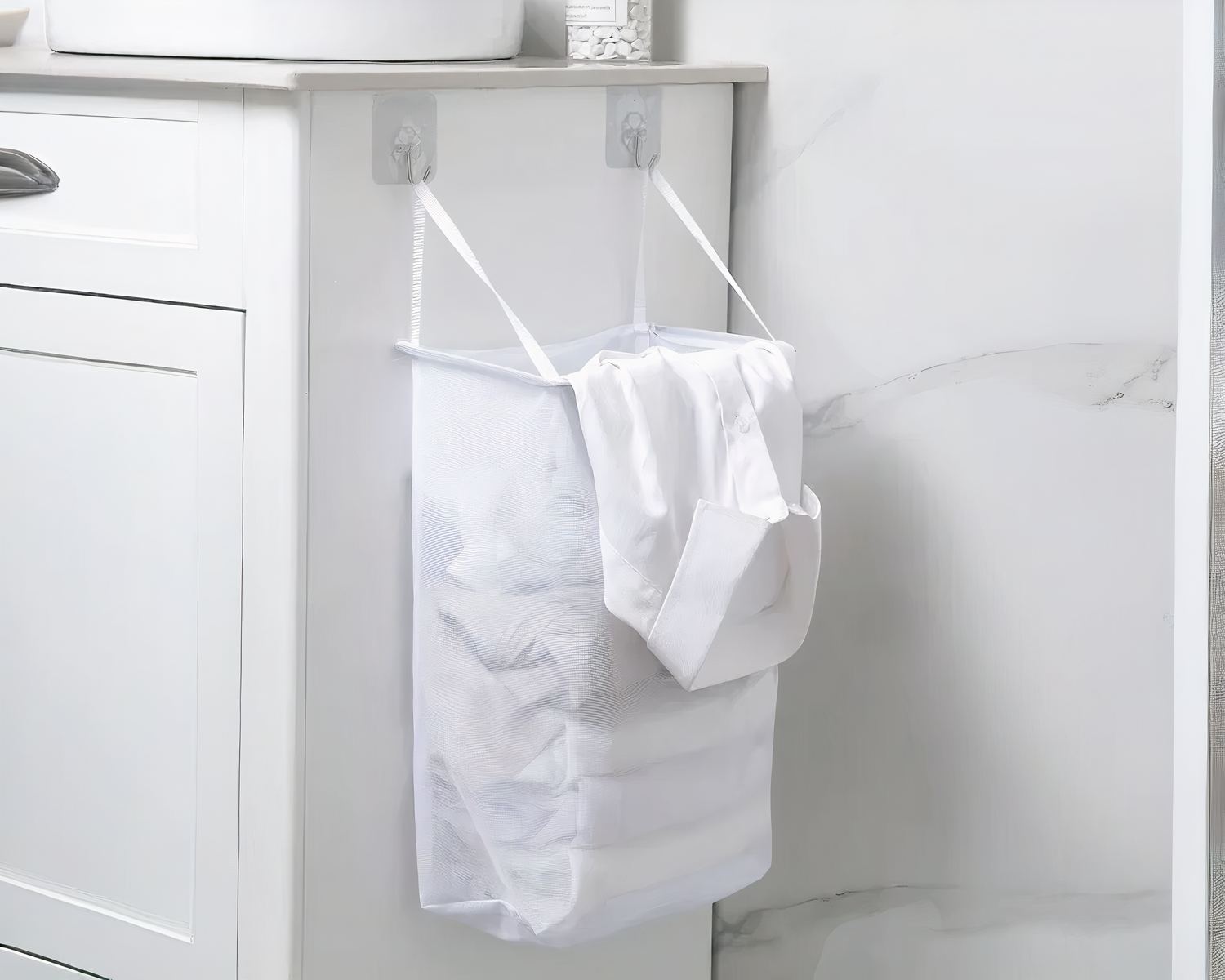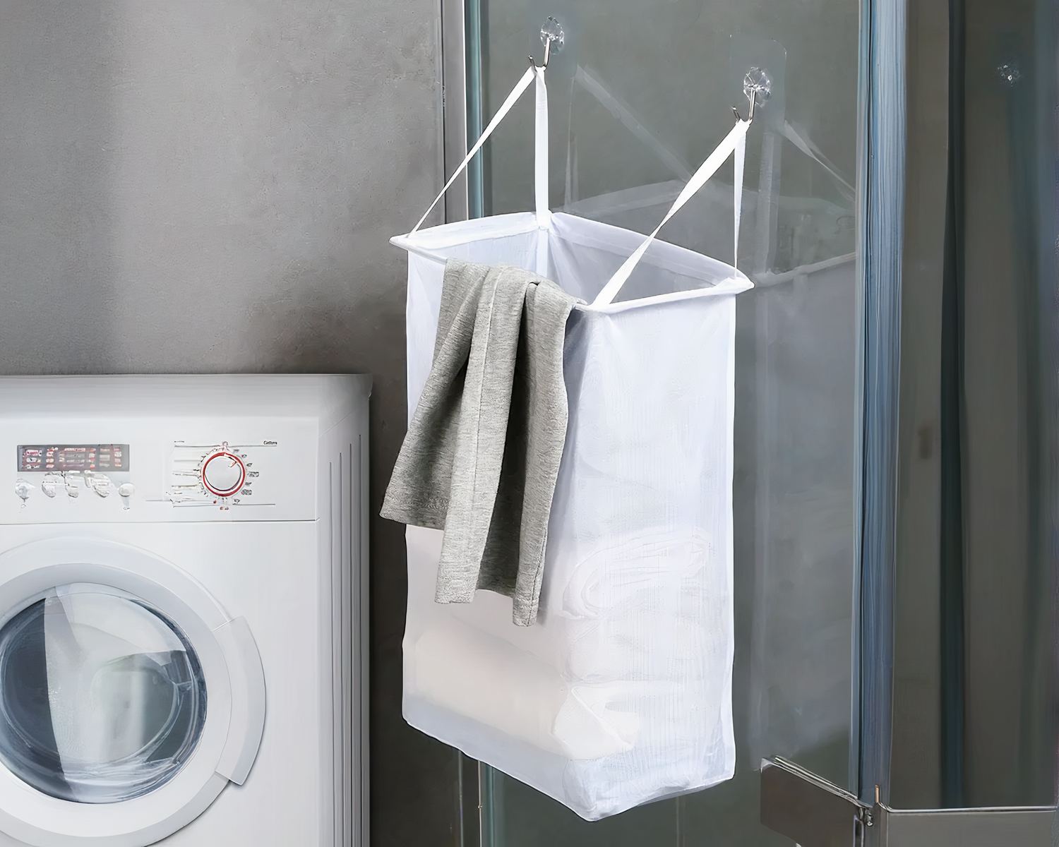 Ce panier à linge est livré avec des crochets à ventouse qui seront parfaits pour maintenir environ 2 à 3 kilos de linge, soit l'équivalent d'une machine à laver. Que ce soit pour vos vêtements de la semaine, pour votre linge délicat ou pour laisser à part les vêtements de bébé, ce modèle sera pratique et fonctionnel.