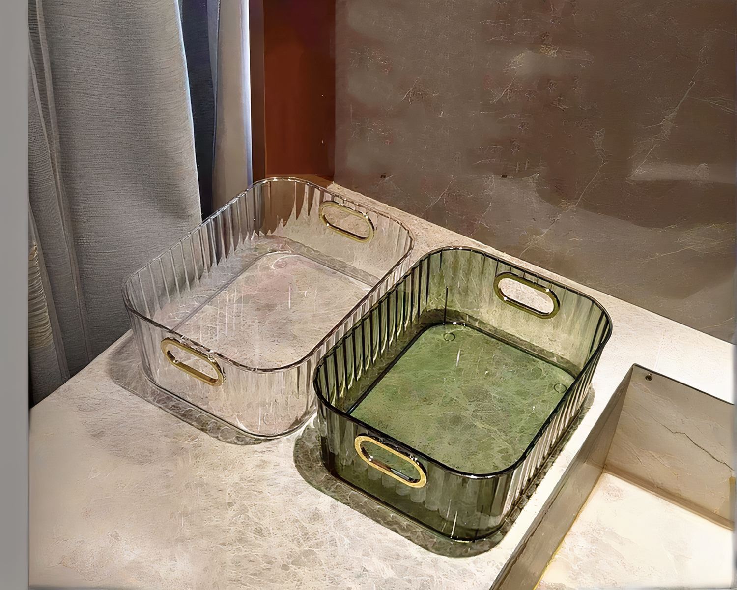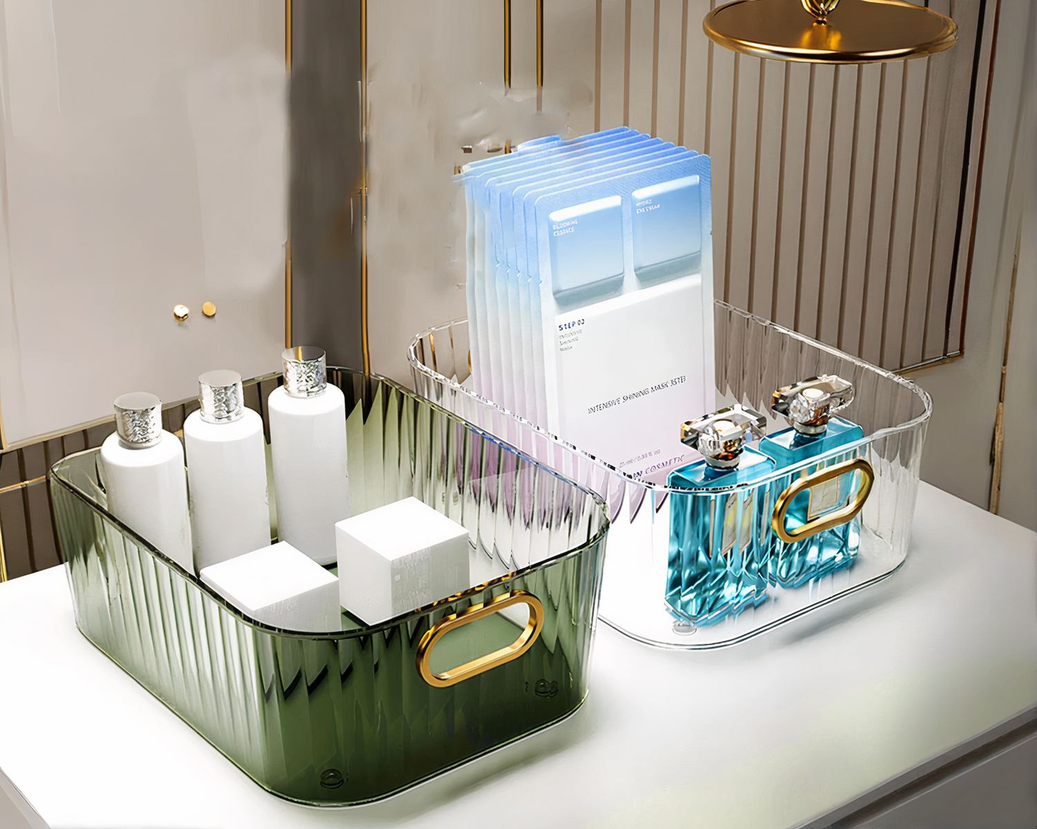 Optimisez l'ordre dans votre salle de bain avec notre boîte de rangement transparente, disponible en deux couleurs rafraîchissantes : blanc ou vert. Conçu pour répondre aux besoins de rangement, notre organisateur polyvalent vous permet de garder vos produits de maquillage, articles de toilette et accessoires essentiels à portée de main tout en ajoutant une touche d'élégance discrète à votre espace.