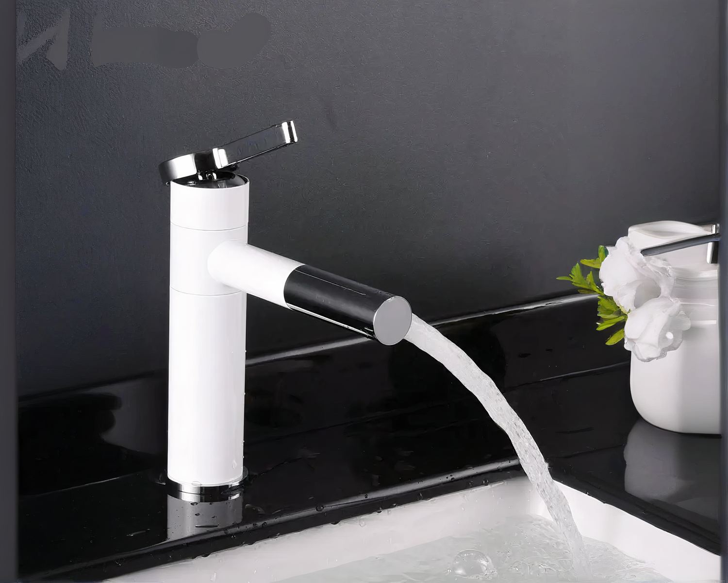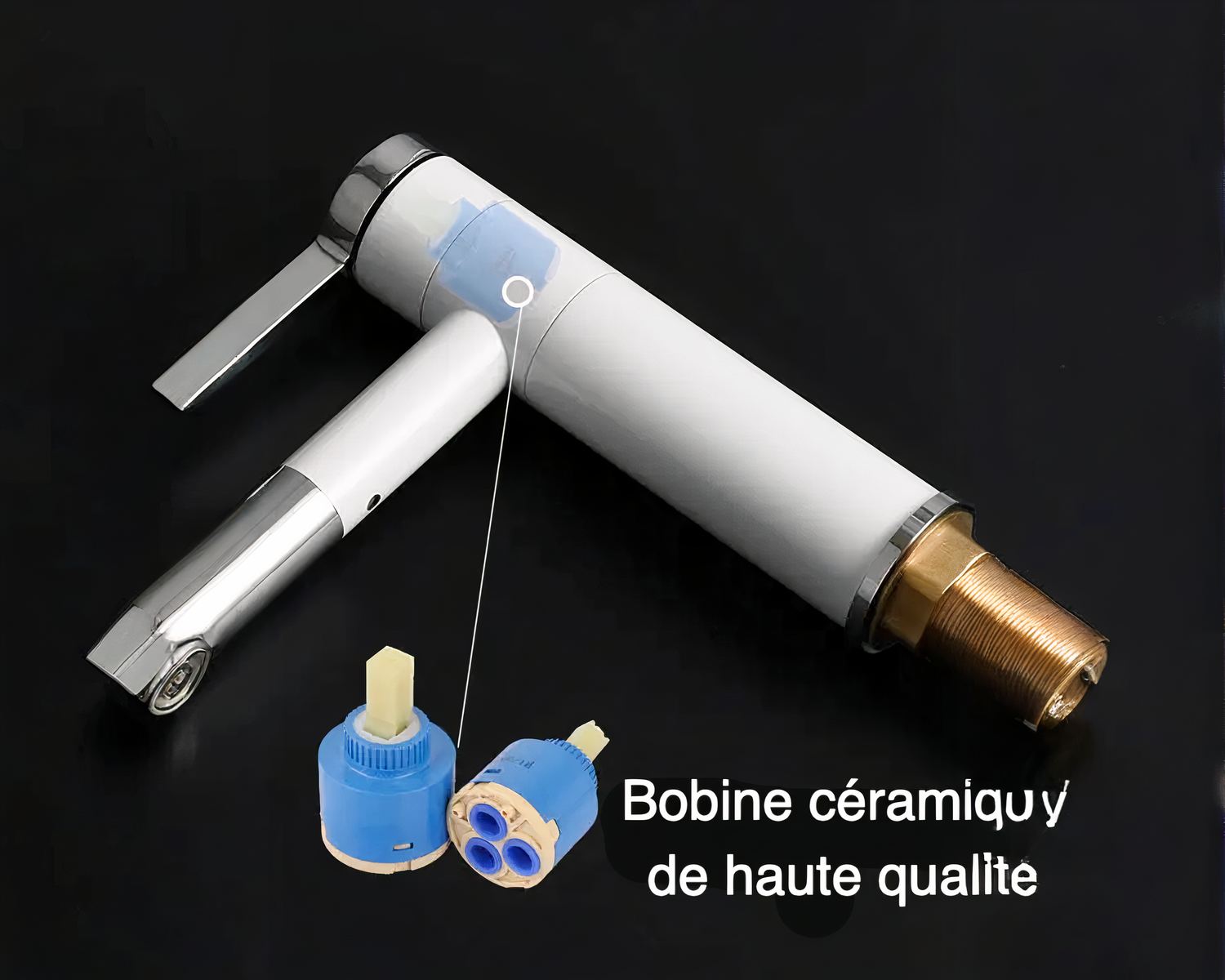 Ce mitigeur de salle de bain est conçu avec des matériaux de grande qualité, du cuivre anti corrosion et de la céramique qui assurent un longue vie à ce robinet. Le placage blanc de finition est fait de nombreuses couches pour un rendu solide et durable. Le look final de ce robinet est moderne et élégant.