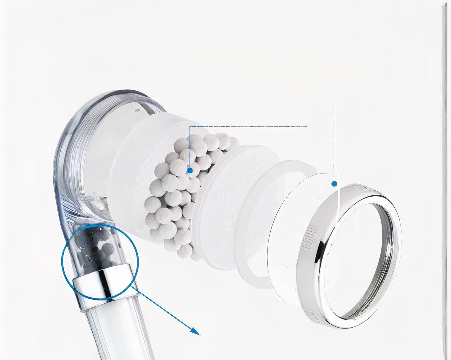 Facile à installer, ce pommeau de douche filtrant s'adapte à la plupart des flexibles de douche standards. Il est également doté de buses anti-calcaire qui facilitent l'entretien et prolongent sa durée de vie. Profitez d'une douche revitalisante et purifiante grâce au pommeau de douche filtrant blanc ou bleu, et prenez soin de votre peau et de vos cheveux en toute tranquillité.