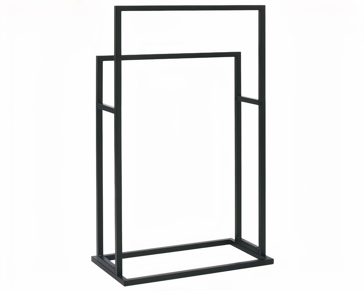 Que vous viviez seul, en colocation ou en couple, ce porte-serviette sur pied vous plaira par sa fonctionnalité et sa faible emprise au sol. Idéal pour faire sécher et suspendre deux grandes serviettes de toilettes, ce modèle est l'un des plus vendus sur notre site. Son design intemporel saura-t-il vous séduire ?