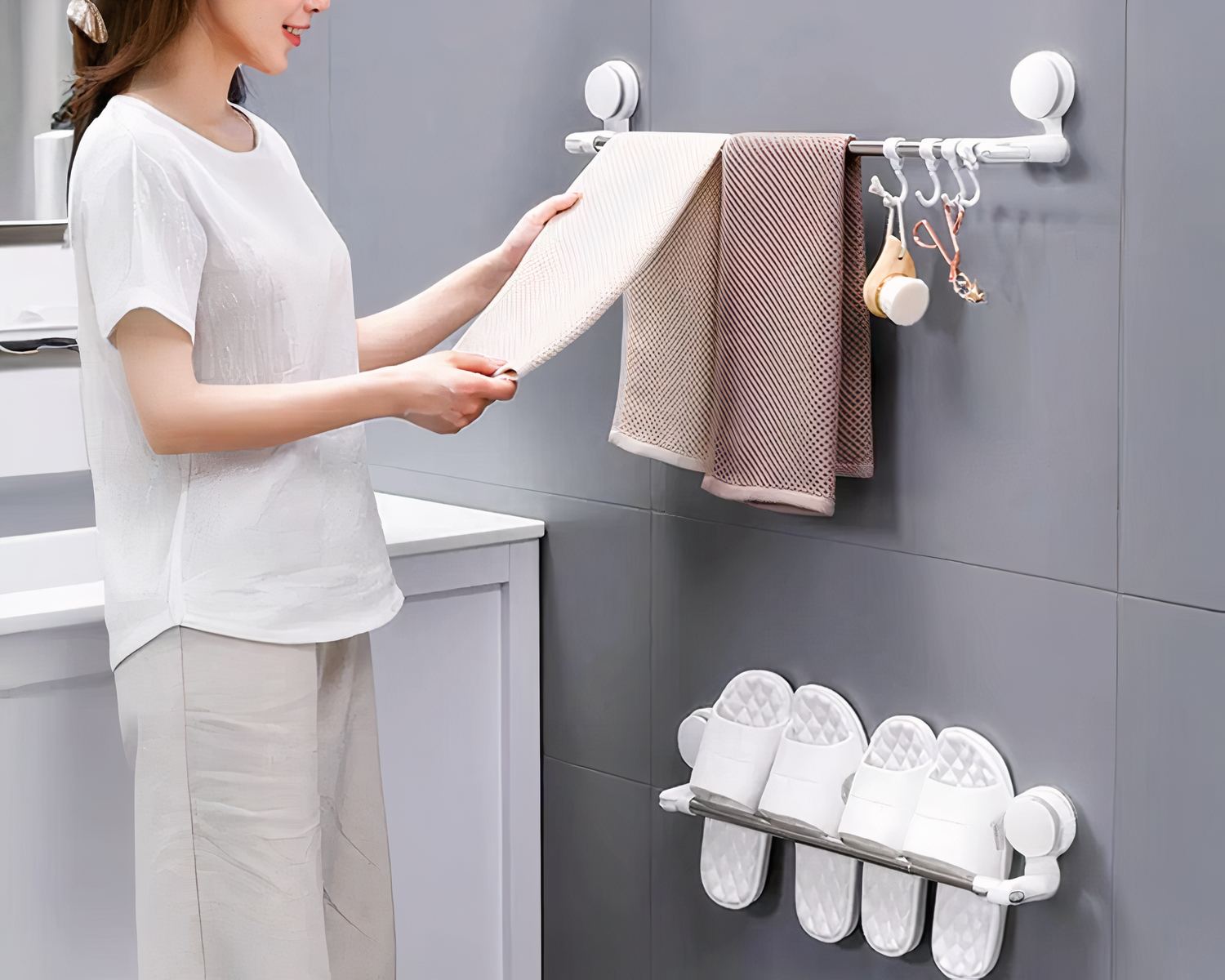 Porte-serviette télescopique à ventouse