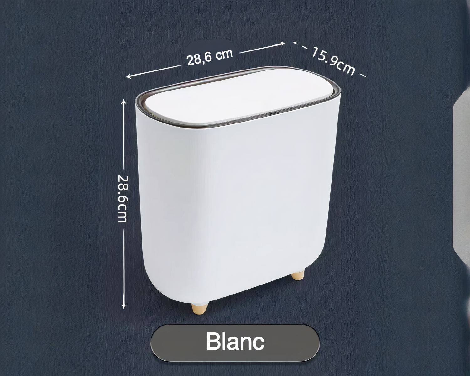 Cette poubelle de salle de bain est conçue avec des dimensions parfaites et une largeur qui permet de la loger dans un petit espace. Son design compact permet une utilisation efficace et le couvercle facile à ouvrir et à refermer d'un seul doigt assure une meilleure hygiène. Le matériau qui la compose est solide et durable, avec une grande résistance à la charge et à la compression.