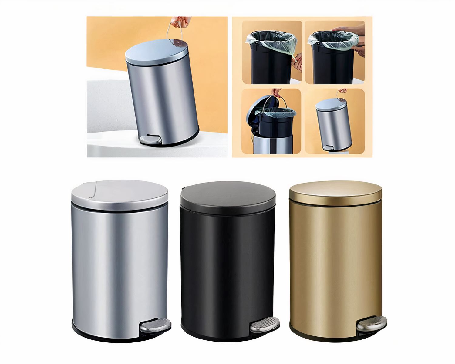 Notre poubelle salle de bain à pédale est un modèle conçu dans un matériau inoxydable résistant au temps. Le seau amovible à l'intérieur est en plastique pour assurer un entretien facile, même si vous oubliez d'y ajouter un sac poubelle. Ce modèle intemporel est très fonctionnel et efficace : sa capacité de 6 l est parfaite pour une utilisation quotidienne dans un espace de toilette.