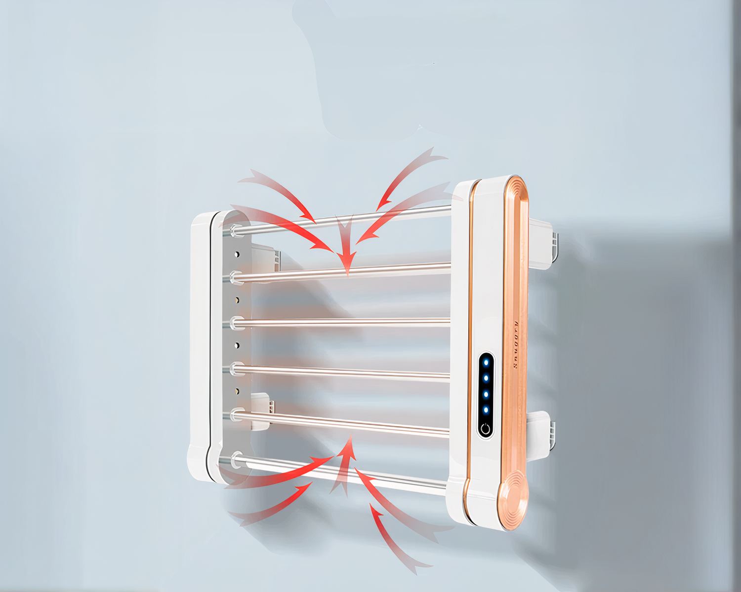 Ses barres en aluminium conductrices permettent un chauffage rapide et constant à une température de 55 degrés, ce qui permet que vos serviettes soient efficacement séchées et prêtes à l'emploi. Son design rotatif à 90° vous permet de faire sécher plusieurs serviettes ou vêtements simultanément sans qu'ils ne se touchent.