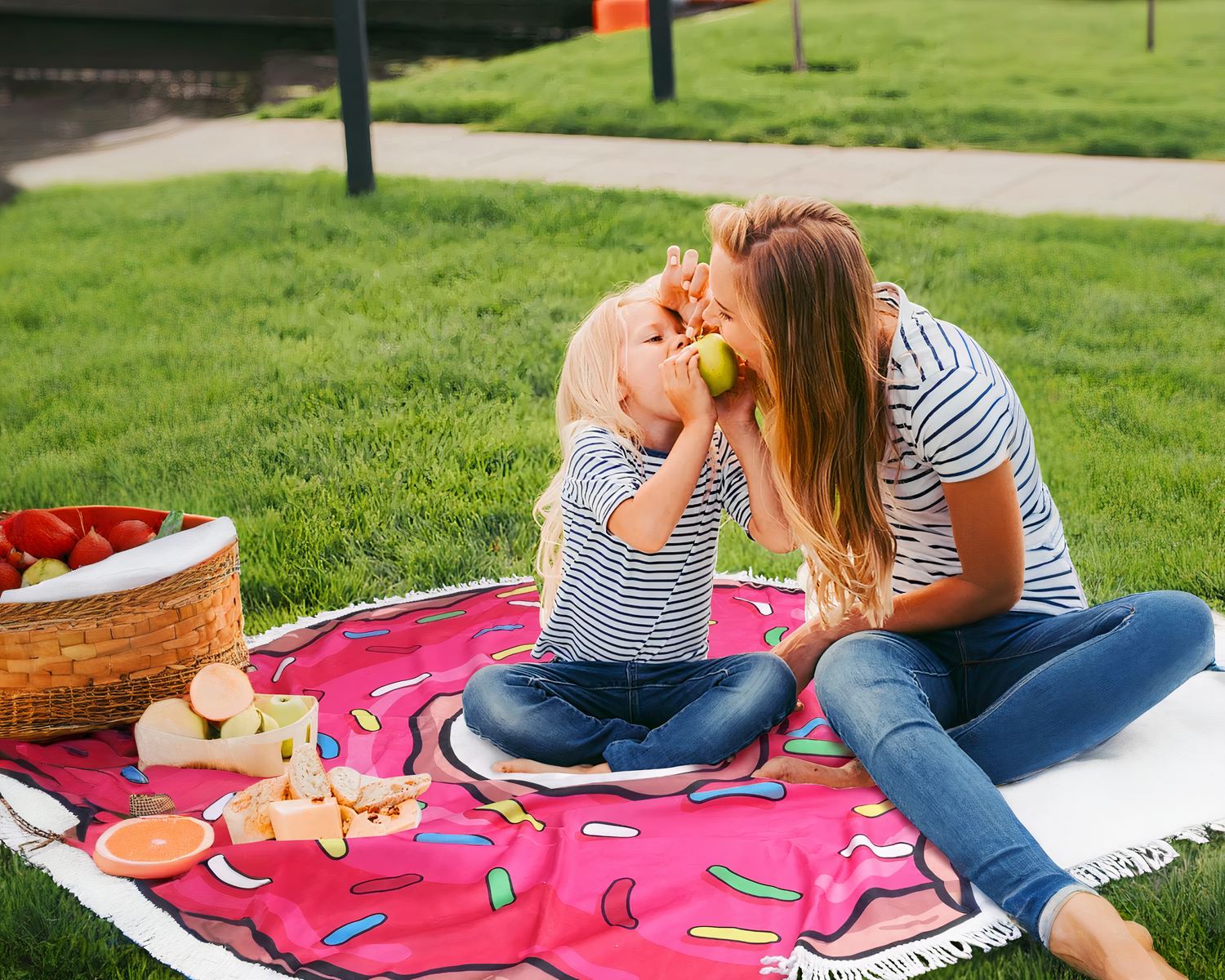 Découvrez la touche gourmande et fun de votre été avec notre grande serviette de bain ronde en microfibre imprimée de délicieux donuts ! Notre serviette n'est pas seulement un accessoire pratique, mais aussi un véritable régal pour les yeux, parfaite pour ajouter une note sucrée et ludique à vos journées de détente.