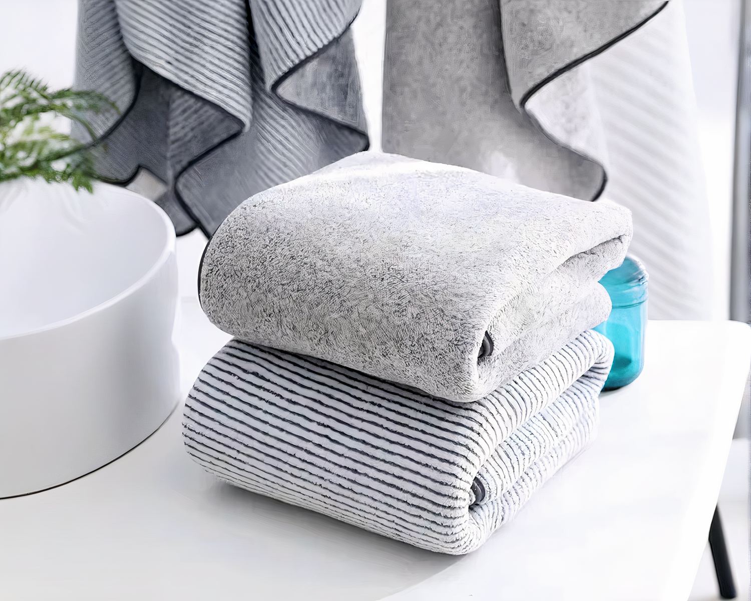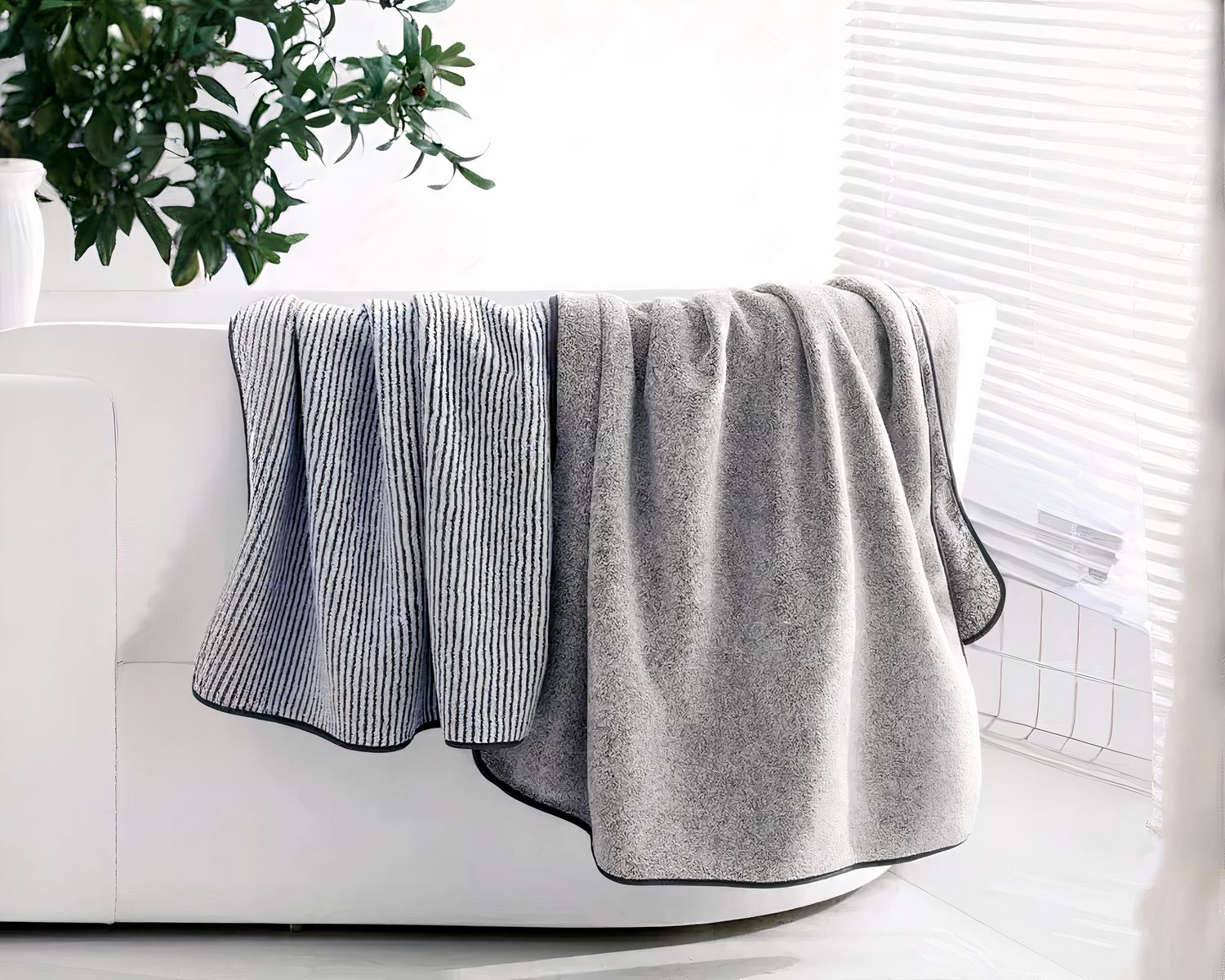 Disponible en deux couleurs grises sobres et élégantes, notre serviette s’adapte à tous les styles de salle de bain. Elle fera partie intégrante de votre décoration, en ajoutant une touche moderne et raffinée. Faites de chaque moment de détente une expérience agréable avec cette serviette épaisse en microfibre, tout en douceur.
