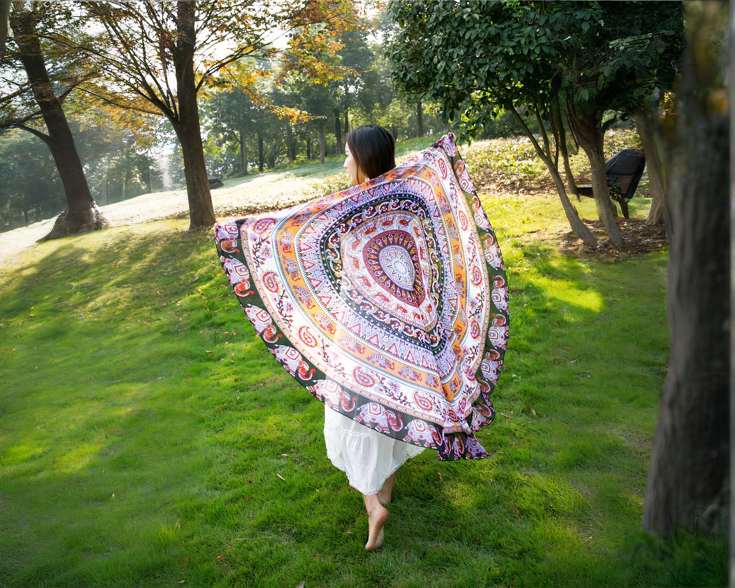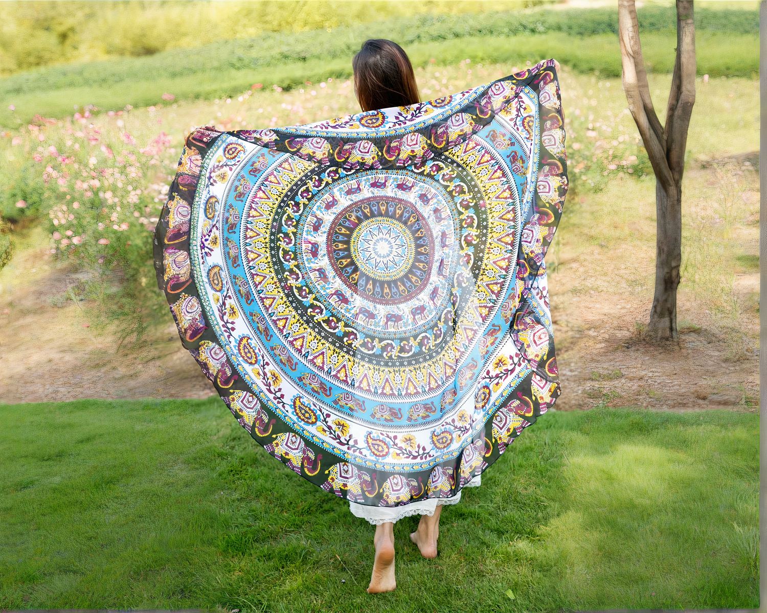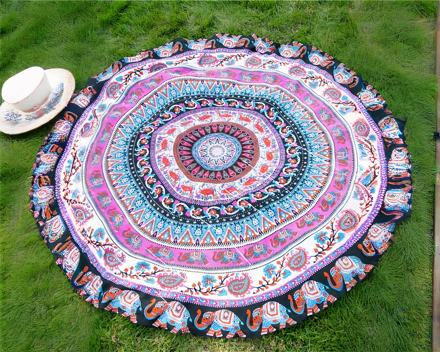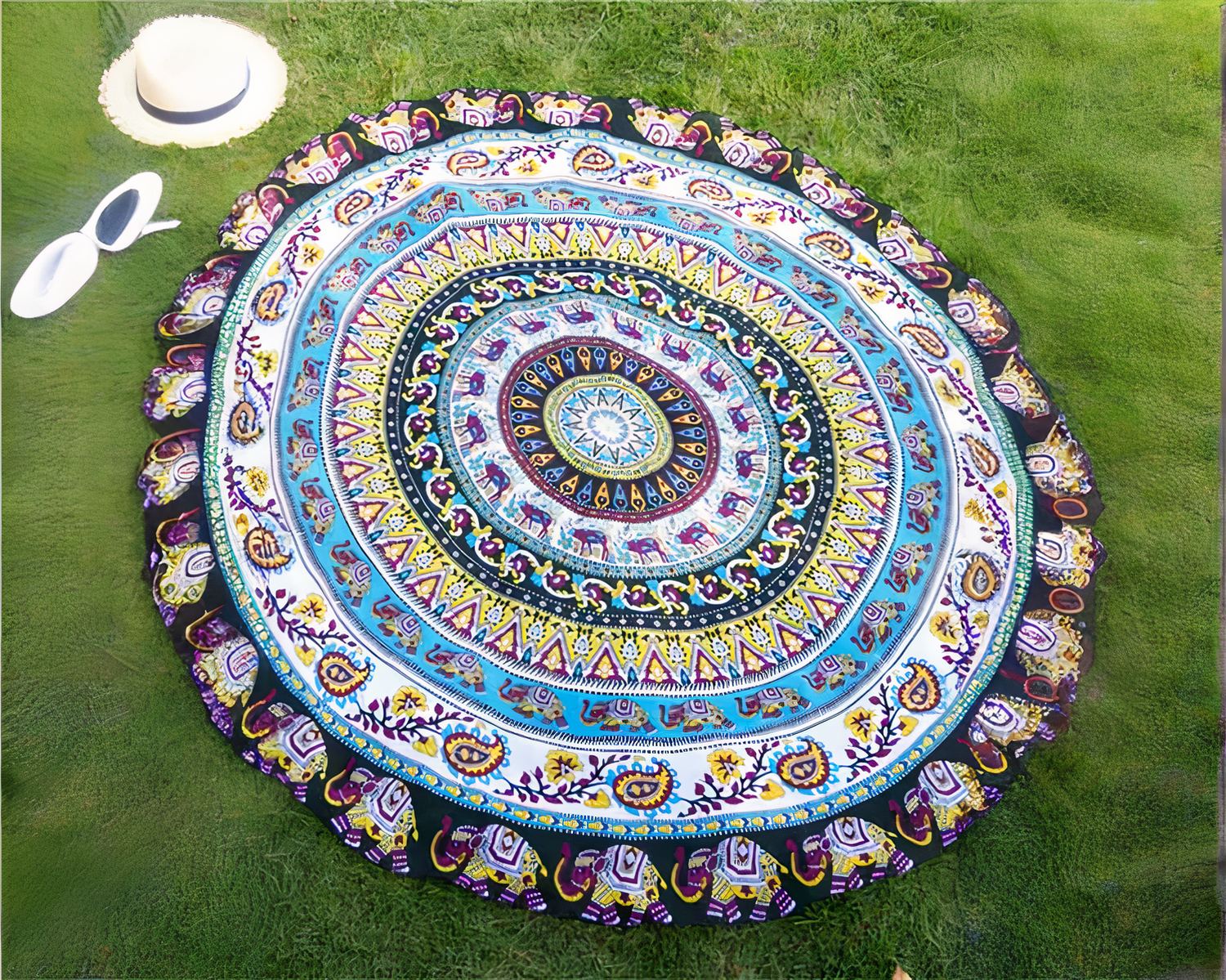 Découvrez l'élégance et la fonctionnalité réunies dans notre serviette de bain/plage ronde à imprimé bohème, disponible en quatre couleurs envoûtantes. Conçue pour ceux qui apprécient le style et le confort, cette serviette sera votre alliée parfaite pour vos journées ensoleillées et vos moments de détente. C'est l'accessoire à avoir cet été.