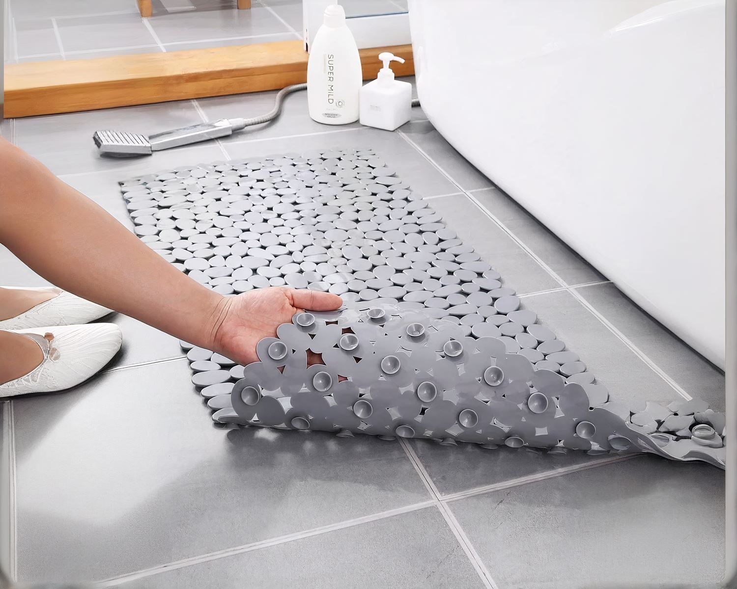 Découvrez notre tapis de bain antidérapant forme de petits galets ! Sa conception résistante à l'eau permet un séchage rapide et une durabilité accrue. Disponible dans une variété de couleurs et de tailles, ce tapis s'adapte facilement à tous les styles de décoration de salle de bain. Choisissez vite votre déclinaison.