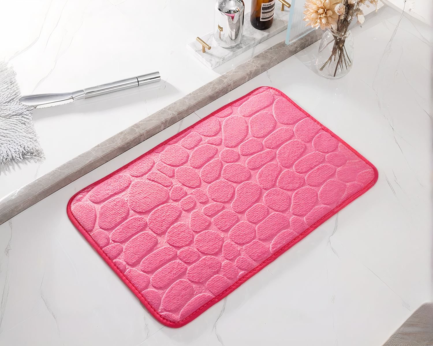 Ce tapis de bain mémoire de forme avec galets est non seulement pratique, mais aussi esthétique. Il s'intègre parfaitement dans tous les styles de décoration grâce à son design épuré. Il est disponible en plusieurs coloris. Il vous suffit de choisir celui qui s'intègrera le mieux à votre décoration d'intérieur.