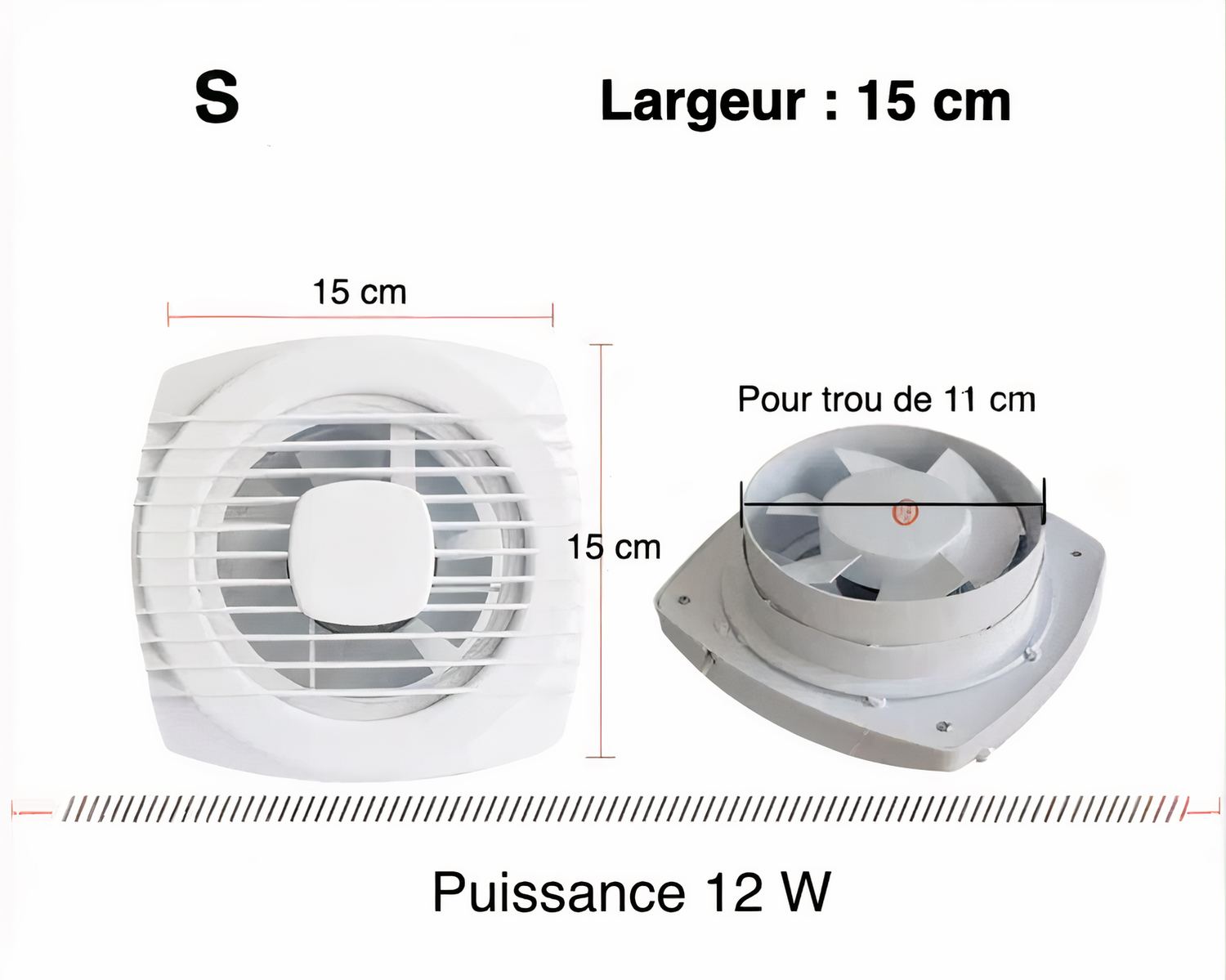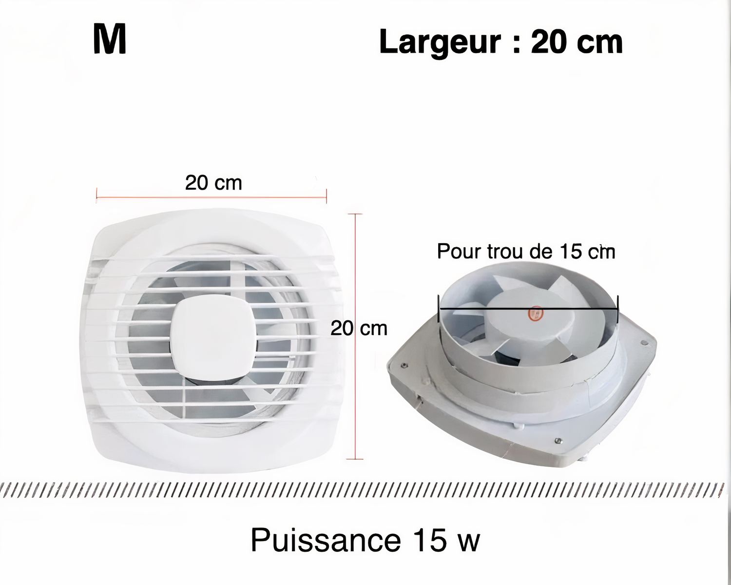 Pour ce ventilateur extracteur simple et pratique, nous vous proposons trois tailles afin de vous permettre de l'adapter à la pièce de votre choix avec plus de facilité. De sa taille dépendra le volume d'air extrait et la force de celui-ci. Relativement silencieux, ce petit mais très efficace ventilateur assainira l'air de votre pièce.