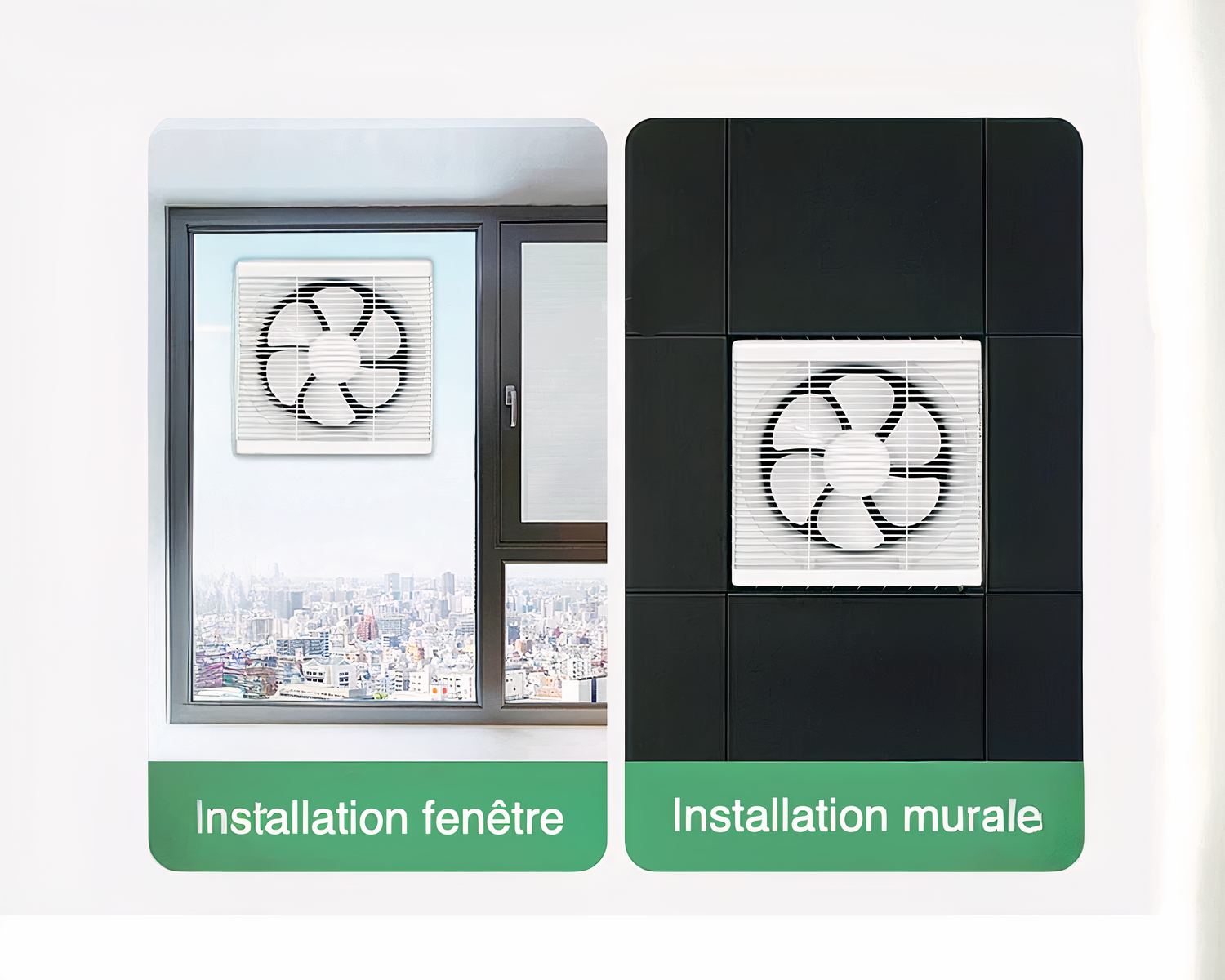 Notre ventilateur pour salle de bain et cuisine est équipé d'un système d'extracteur pour assainir l'air ambiant et apporter une atmosphère saine à votre pièce. Il est facile à installer, que ce soit au mur ou sur une fenêtre, en emportera odeurs et fumées, condensation et poussière. Son matériau principal ABS est très solide et durable, résistant à la chaleur et aux chocs.